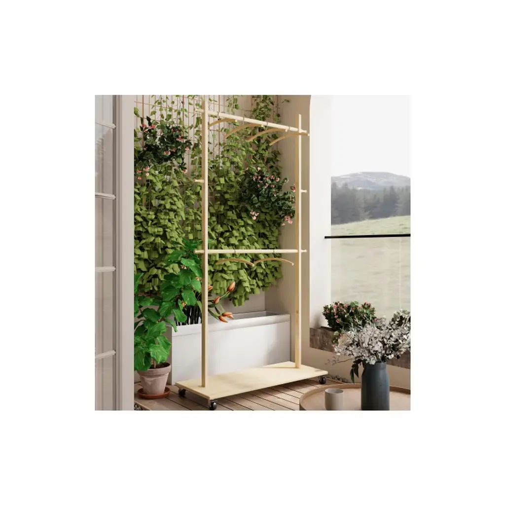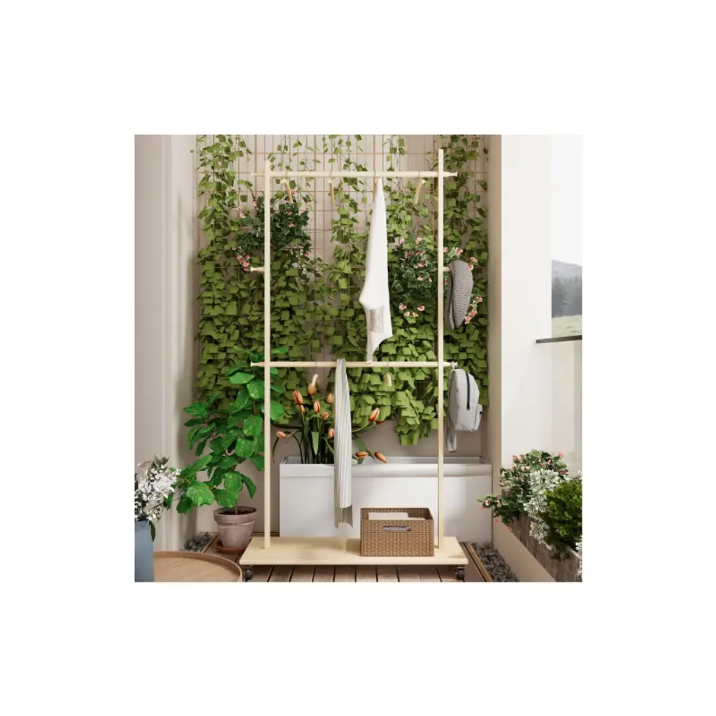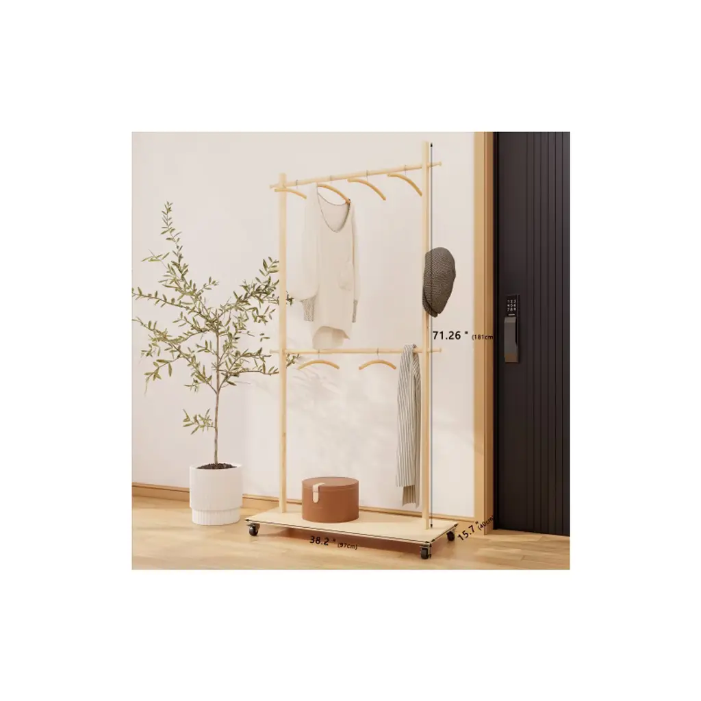 Livareemlen Solid Wood Garment Clothes Drying Rack With 6 Wooden Hangers,space-saving Design,adjustable Shelf And Wheels For Easy Mobility