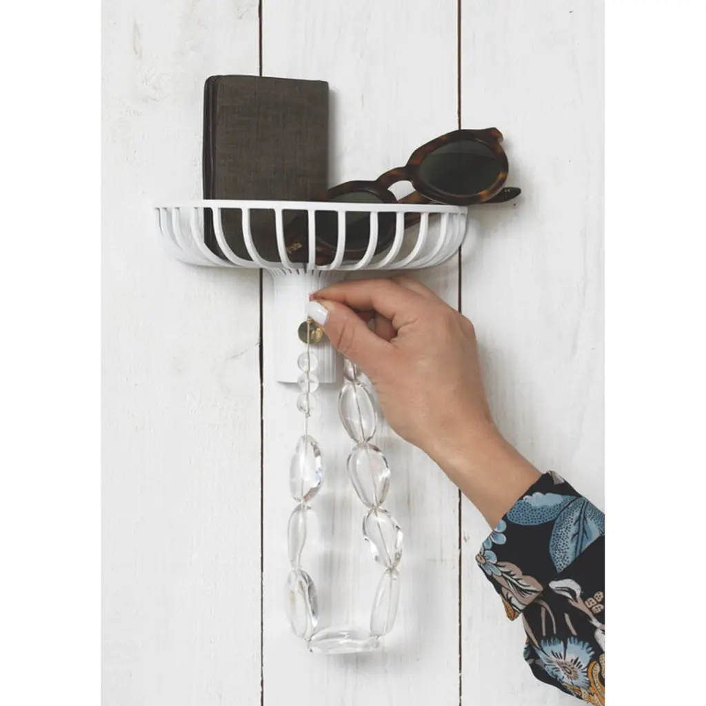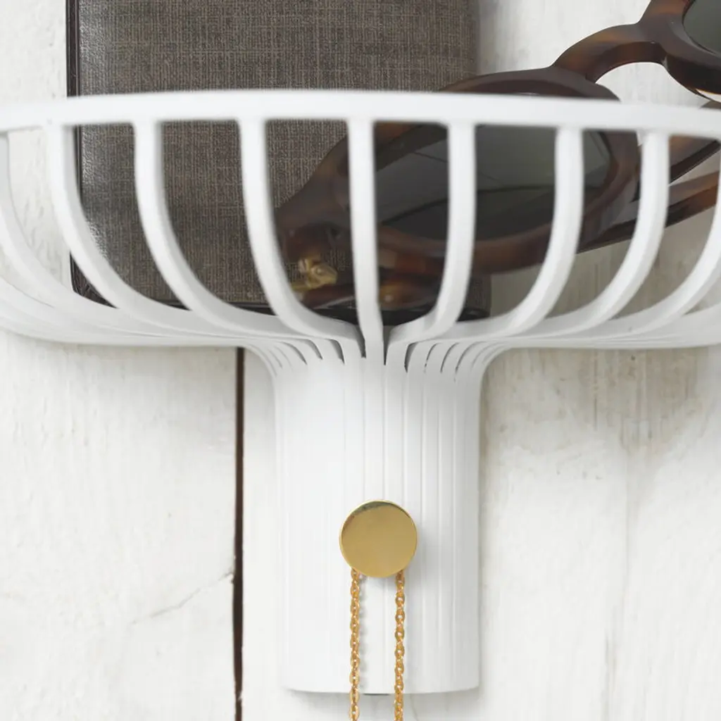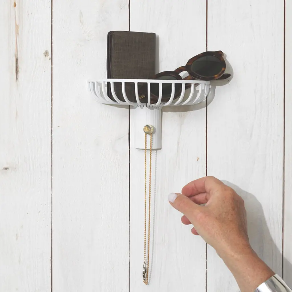 Klong's Lunett Object shelf adds storage space to both the hallway and the bedroom lightly yet beautifully. The steel shelf features a clever knob for silk scarves, jewelry and other accessories, and a handy top basket for hats, caps and sunglasses, for example. Designed by Markus Johansson, the sculptural shelf can be hung on the wall on its own or as a combination of two or more shelves – the Lunett Objects shelves together form a beautiful round pattern on the wall.