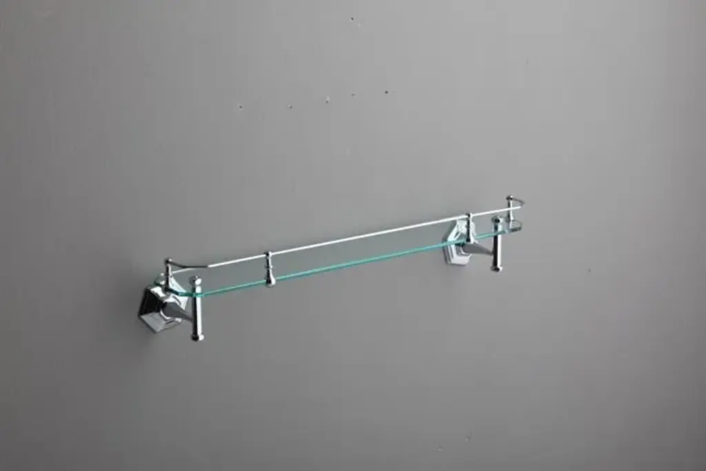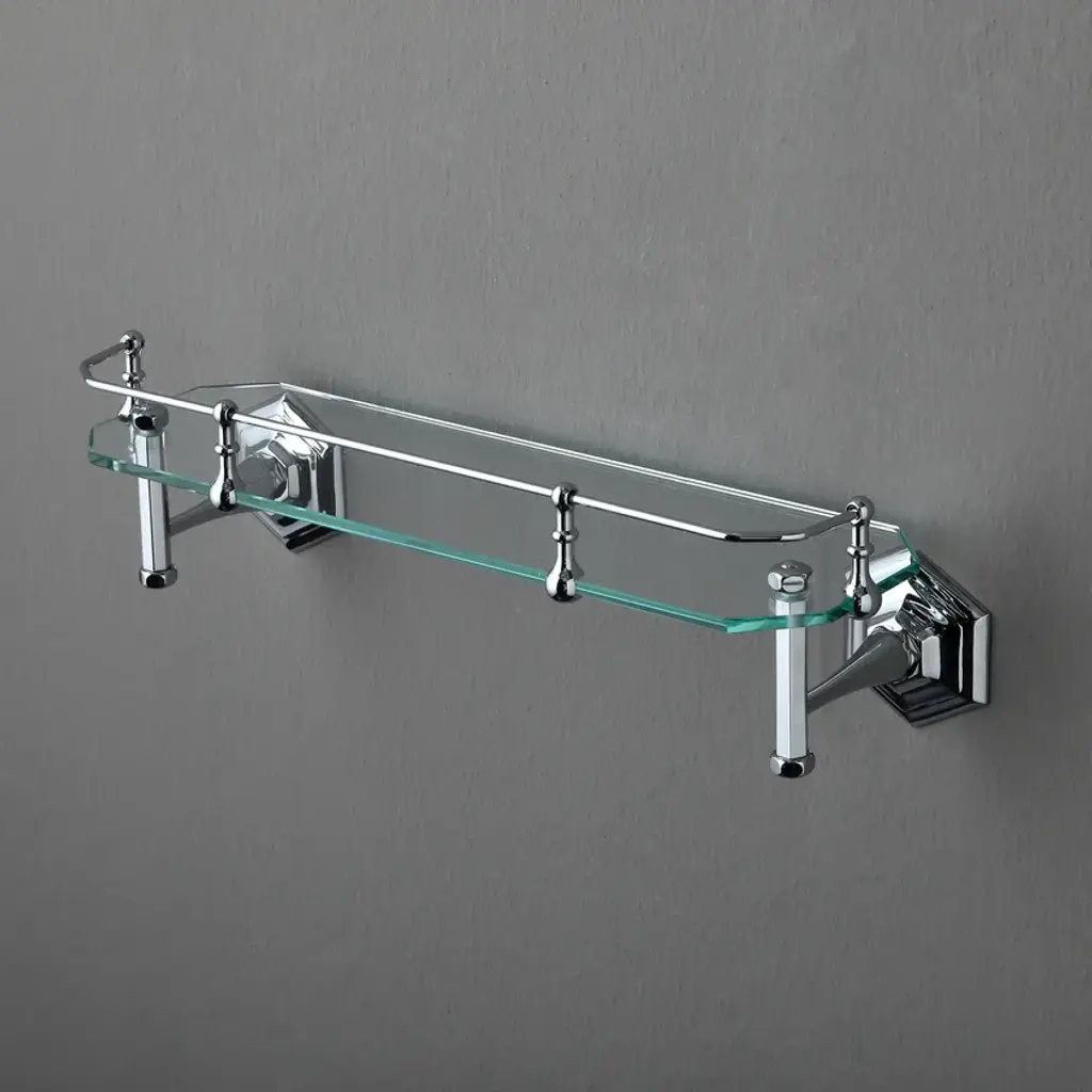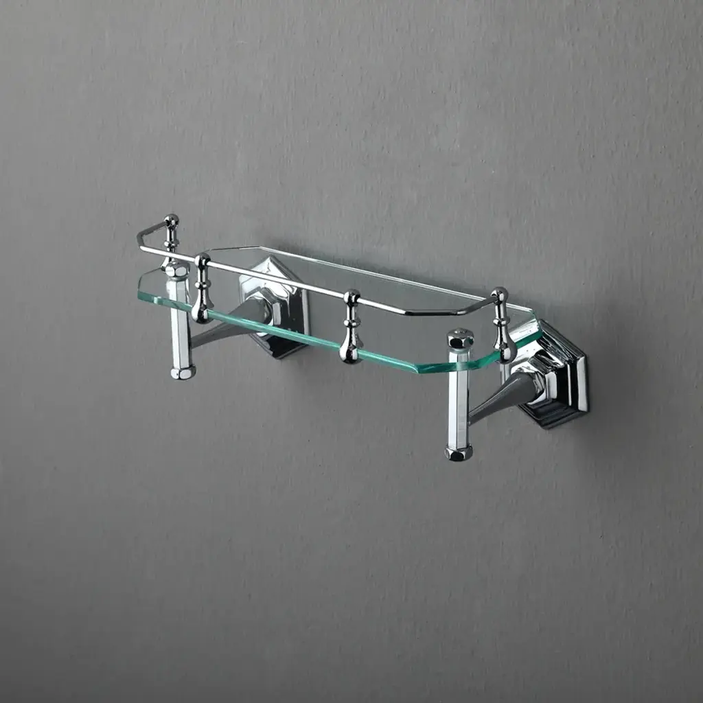 Glass shelf.Wide range of freestanding or wall-mounted accessories (soap and toothbrush holders, toilet paper and toilet brush holders, bathrobe hooks, etc...) for bathrooms. Accessories made in ceramic and chrome plated brass, gilded or with many other finishes (nickel, copper, gold, bronze, crystal).