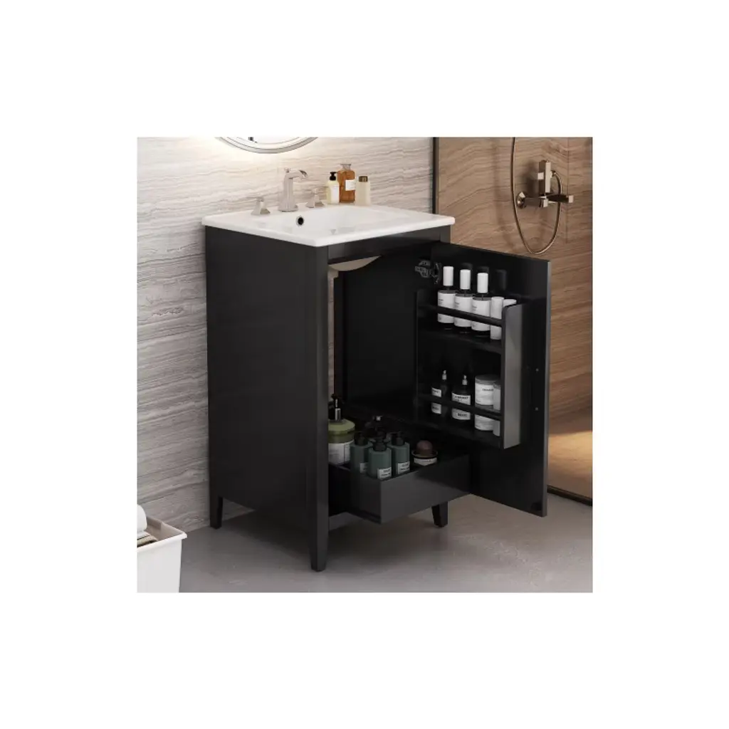 Lyngins Small Bathroom Vanity With Sink, Freestanding Vanity With Removable-drawer Cabinet, Soft-closing Door, Functional Drawer, Door Shelf, Black