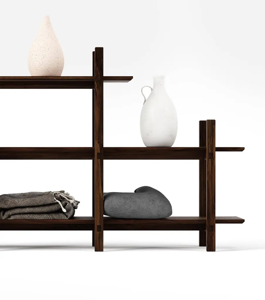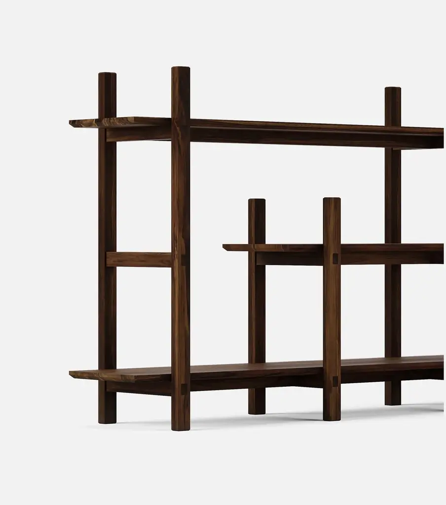 The Maderas Console shelf features elegant joinery, lightweight design, and timeless sustainable style. Perfect for electronics, books, or any other items you want to show off.