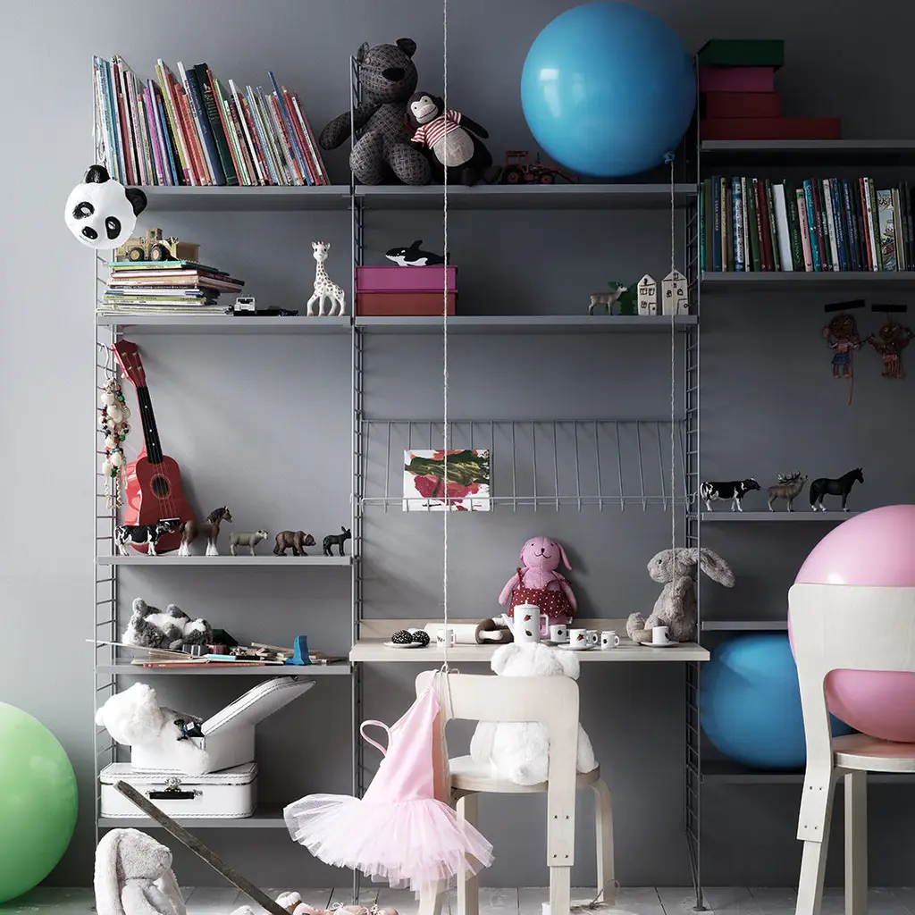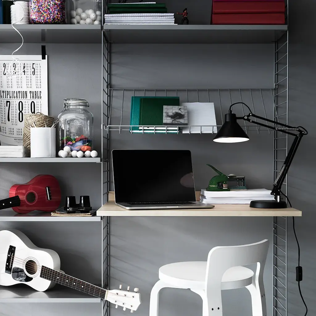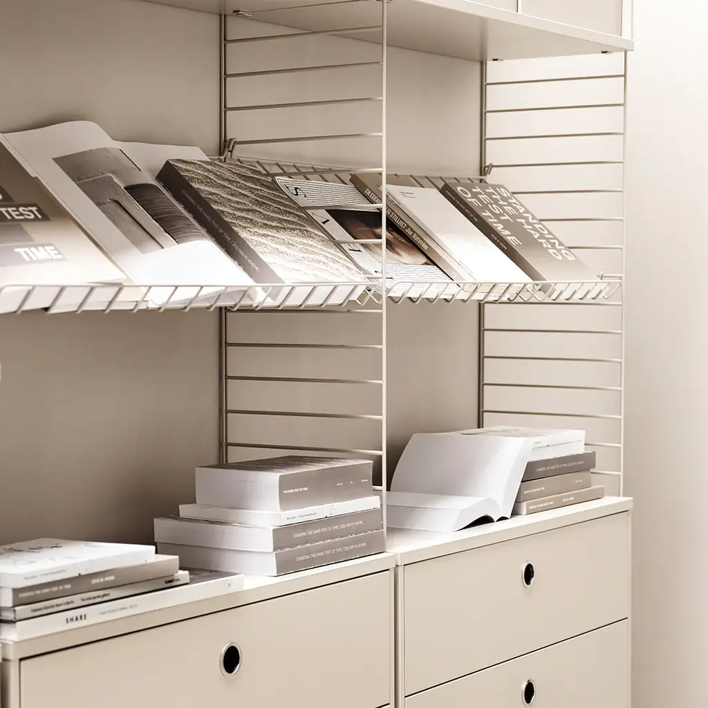 The magazine shelf in wire is available in one width, 78 cm, and fit into 30 cm deep wire panels from String® System. The magazine shelves create a dynamic shelving combination where you have room to showcase your favourite books and magazines. The magazine shelf in wire gives you plenty of room to be creative by adding s-hooks. The magazine shelf will blend right into your string shelf since their unique wire design is the same. Choose a magazine shelf in the same colour as your panels or make your magazine shelf pop by picking a different colour.