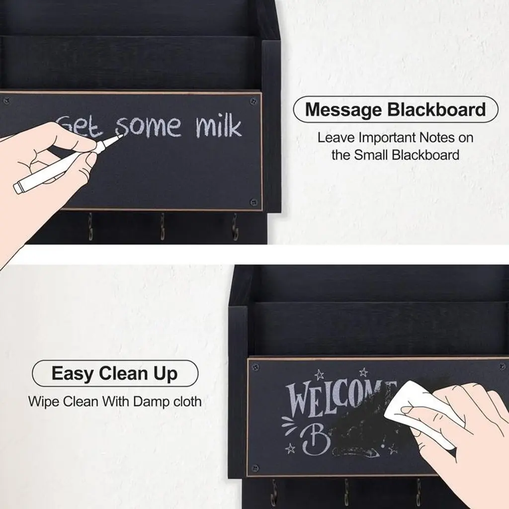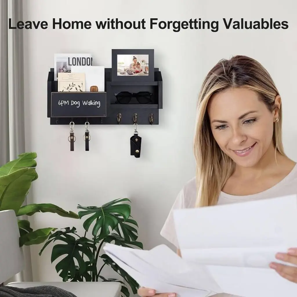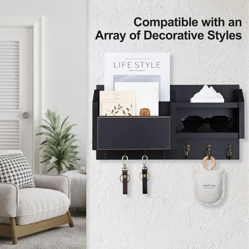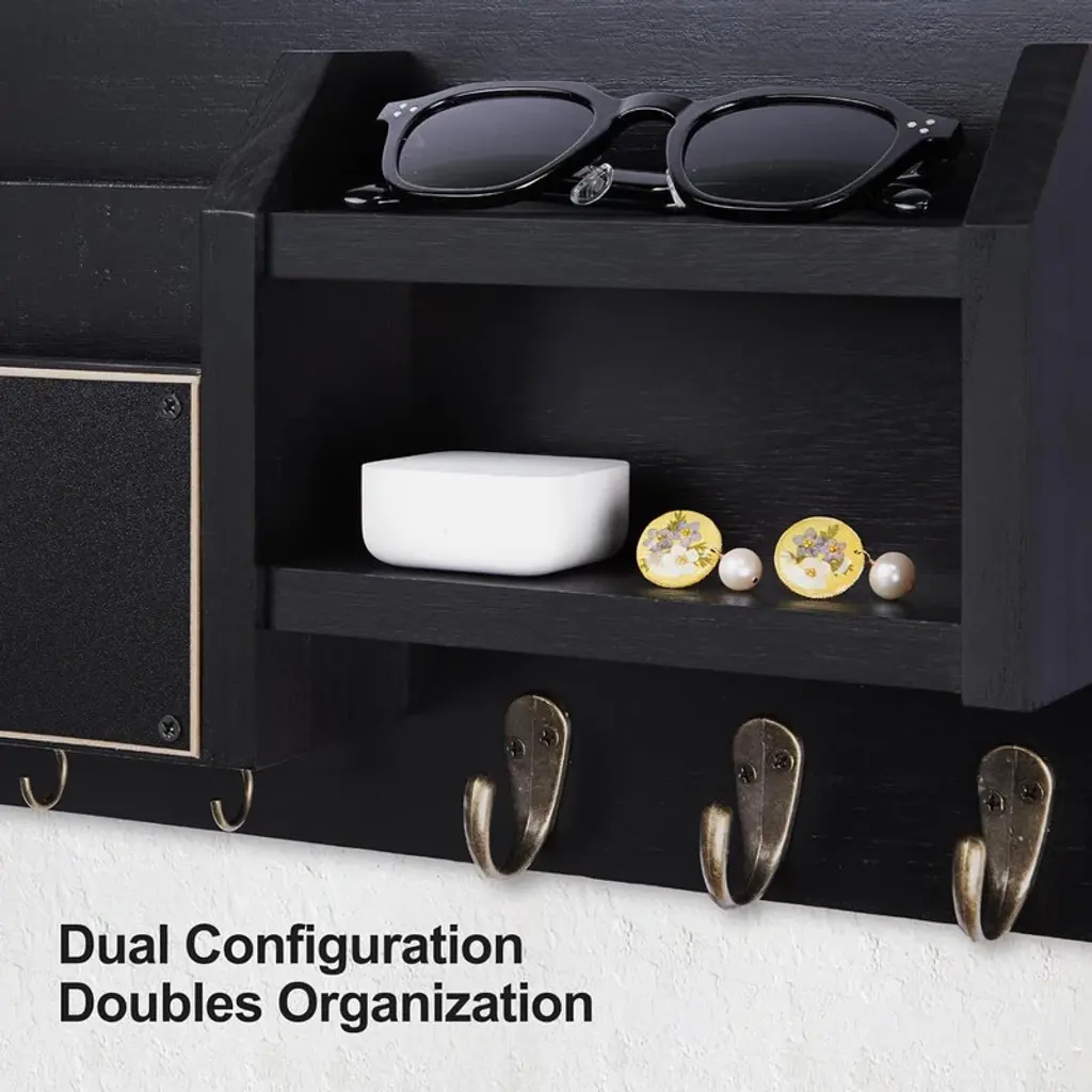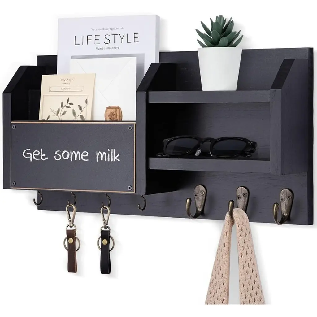 Mail And Key Holder Wall Mount Key Hanger With Shelf - Black