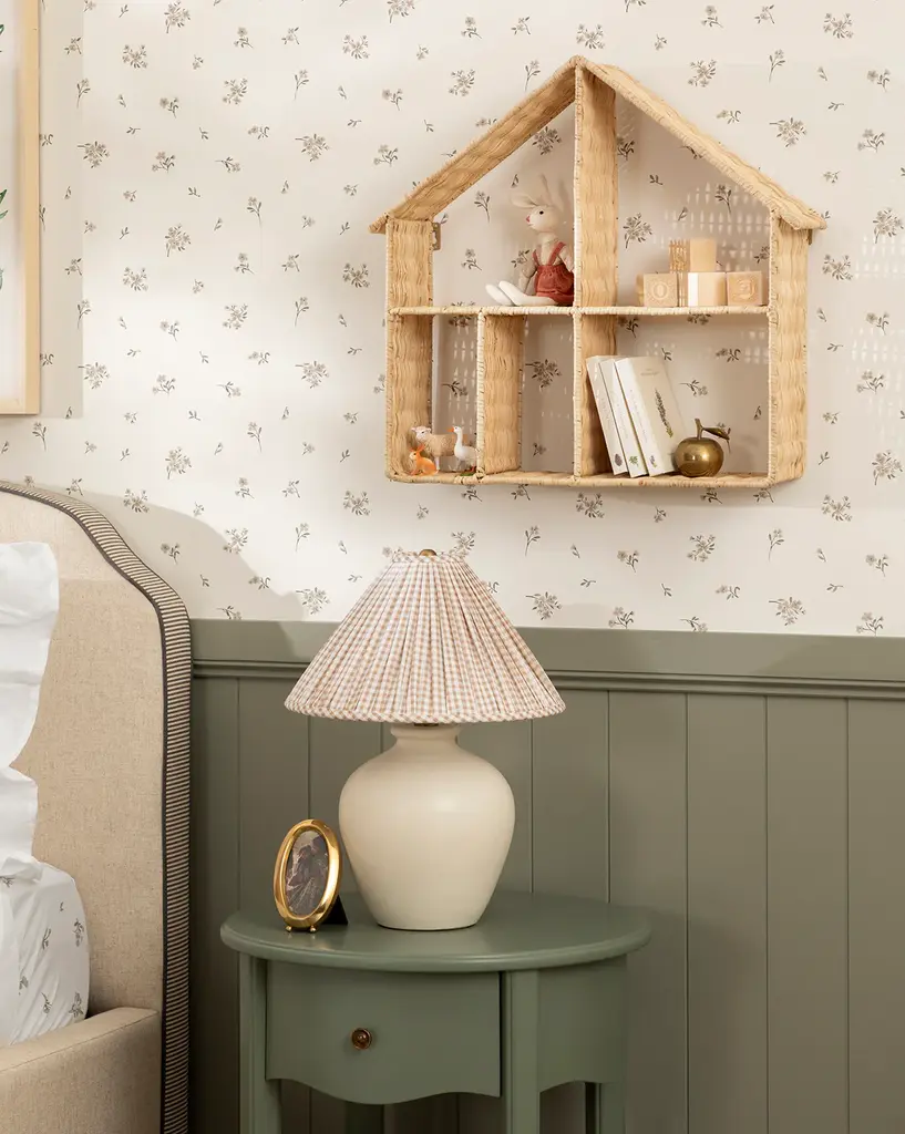 Add playful charm and functional style to any room with the Maison Shelf in a natural finish. Shaped like a little house, this shelf offers thoughtful storage and display space for books, treasures, or toys bringing warmth and whimsy to any space.
