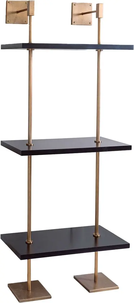 Whether you hang it on a wall or stand it on the floor, this three-shelf unit will bring timeless glamour to a room. The aged brass finish of the supports complements the semigloss black finish of the shelves to perfection.