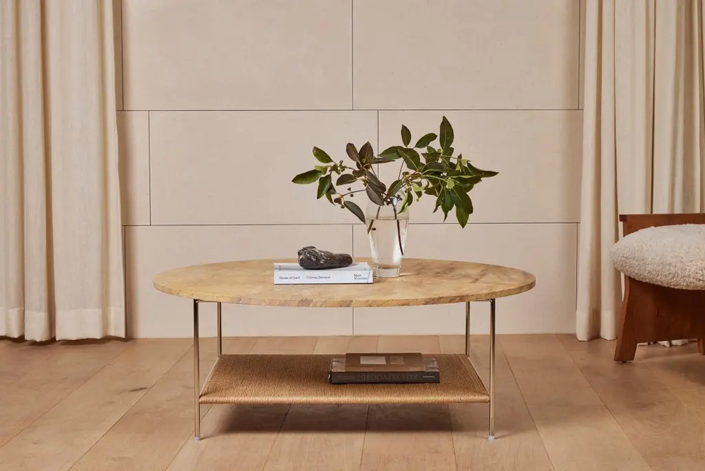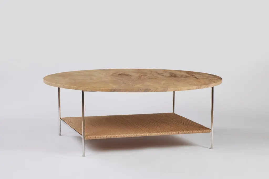 Marble Coffee Table With Rush Shelf - Polished Nickel Plated