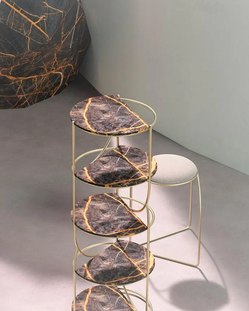 Marble Cosette 110 Shelf by GIROTTI ENRICODimensions: D 40 x H 110 cmMaterials: Galvanic Structure, Marble.Weight: 14 Kg. Enrico Girotti is an industrial designer who has found in the word “maker” his most authentic form of expression. Graduated in Industrial Design from the IUAV University of Venice, in his creations, he has established a strong connection between the creative and production processes, blending technical training with his personal research. He expresses himself in a continuous analog cross- disciplinary exchange between functions and forms. He engages in design both in the industrial and artisanal realms, striving to bring forth and incorporate the hidden connections between the concept, the context, and the people in the physical manifestation of the object. This integrated process, in which every occurrence is not random, rejects randomness. In 2017, he founded the brand lapiegaWD , as a direct and unmediated design initiative. This brand represents an ever-evolving synthesis of his research on materials, processes, forms, and relationships. In 2023, he founded EDIZIONI ENRICO GIROTTI, a platform to freely experiment with techniques, craftsmanship, and design, creating small series, uniquely numbered pieces, and advanced customizations of lapiega products, as well as pre-series.