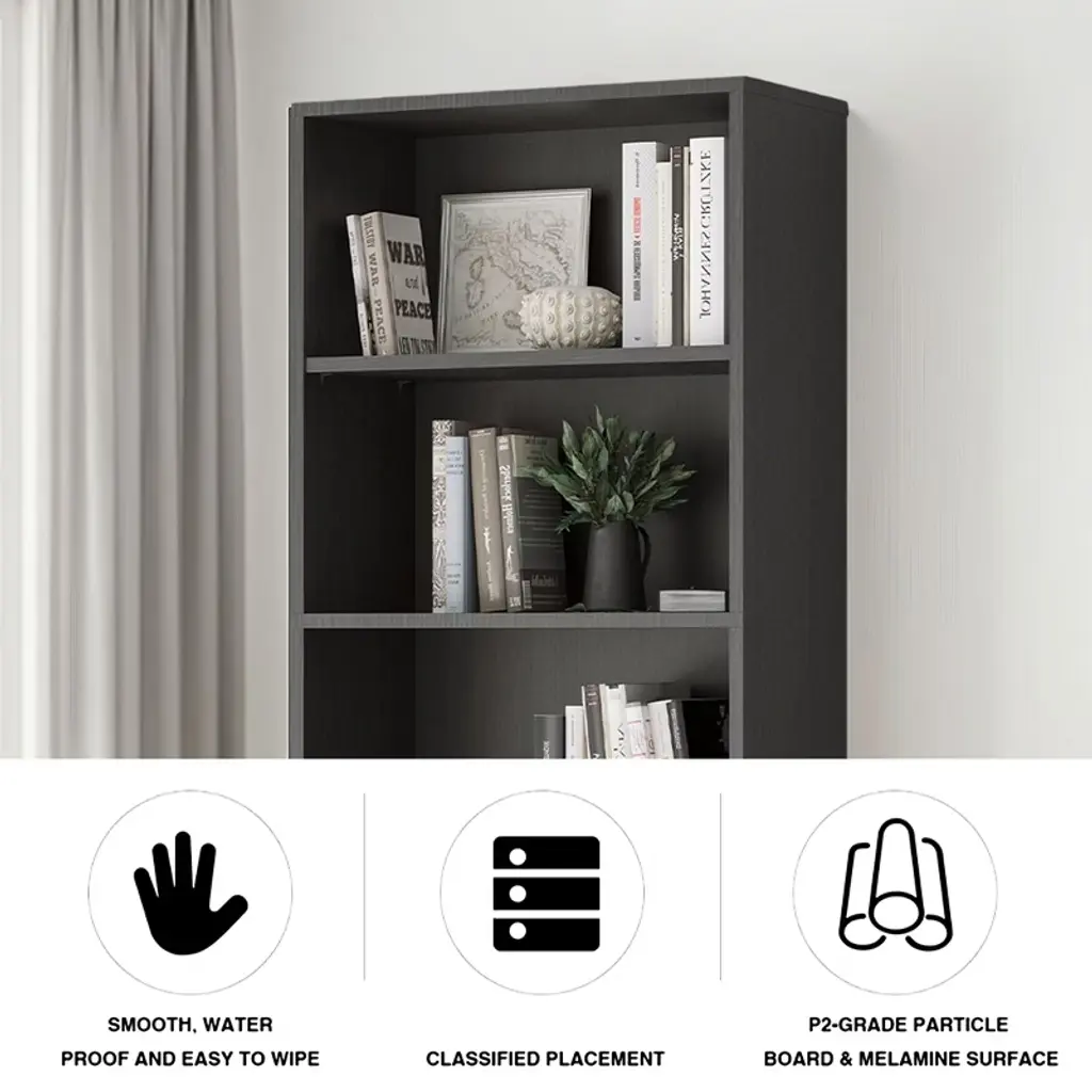 MAYEERTY 3-Shelf Bookcase with 2 adjustable shelves offers ample storage for books, decor, electronics, etc. Multi-functional (room divider, display case) with sturdy wood build, anti-toppling device, and easy assembly¡ªideal for any room.