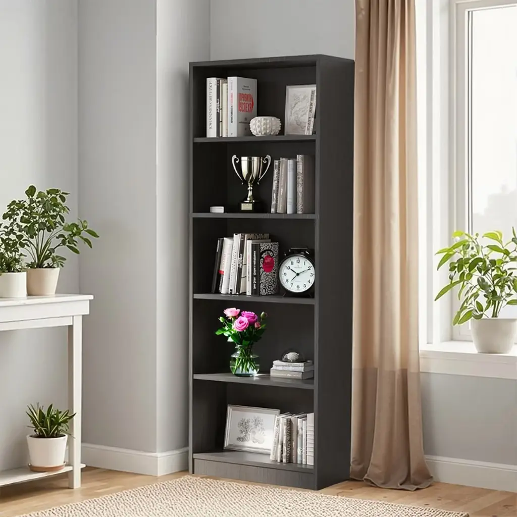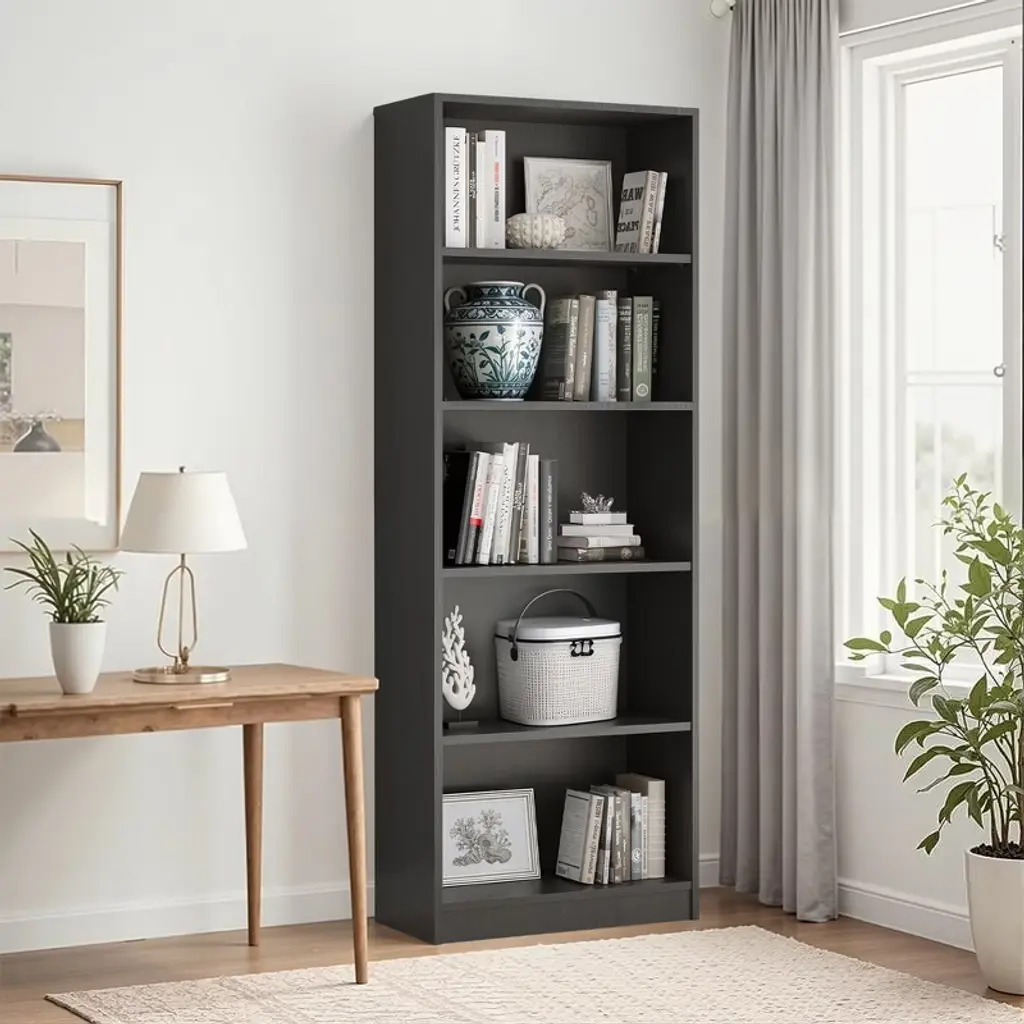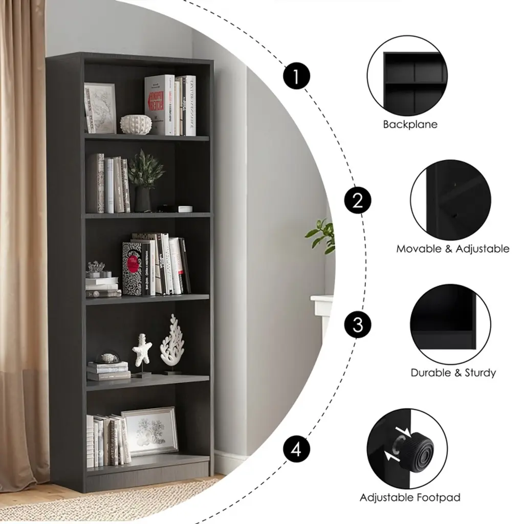 Mayeerty 5 Shelf Adjustable Freestanding Wood Bookshelf For Home Office Black