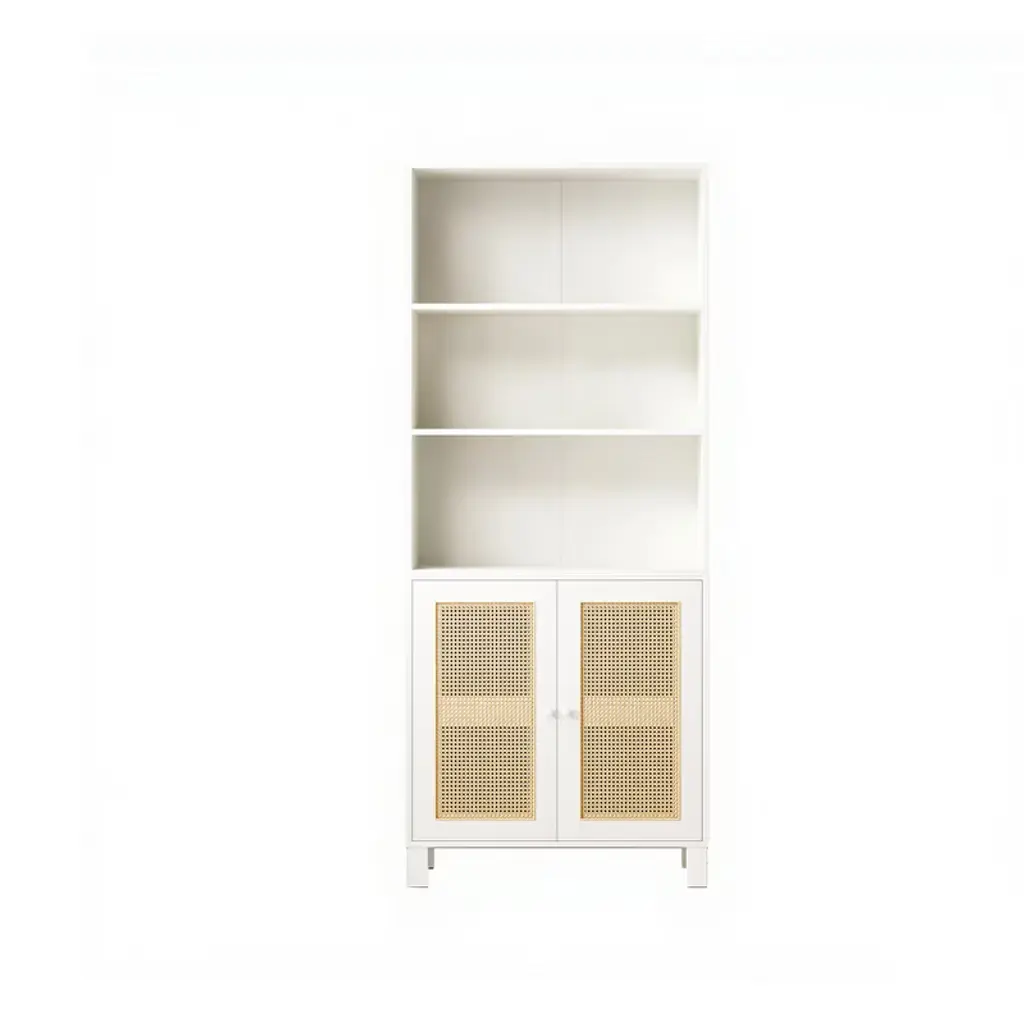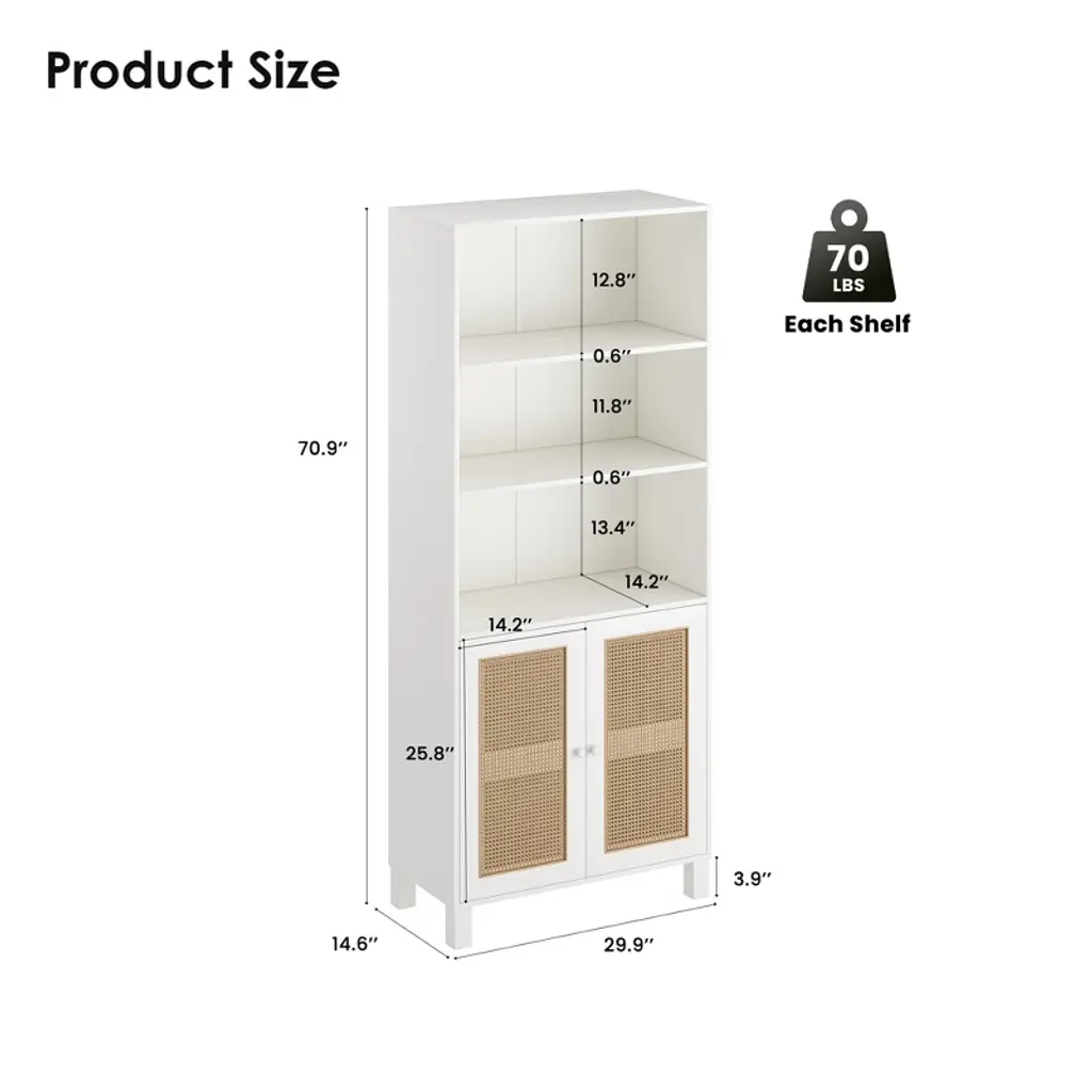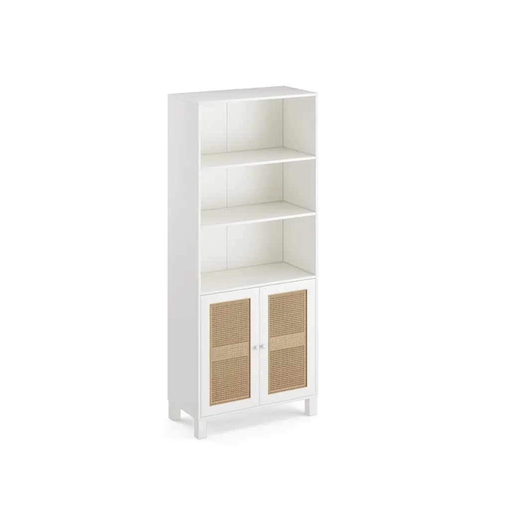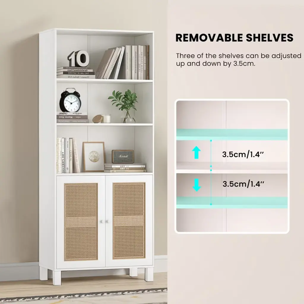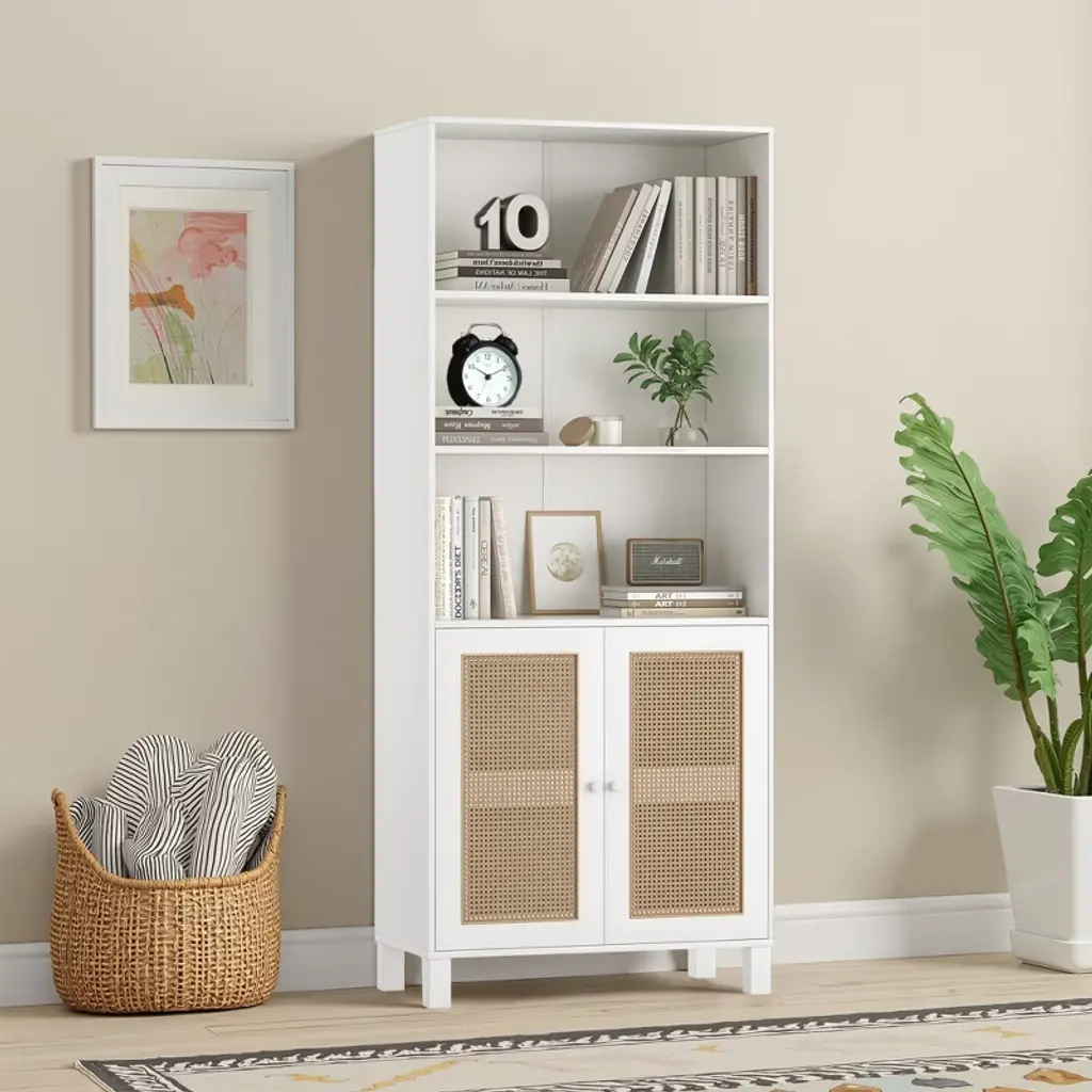 Mayeerty 5 Shelf Bookcase With Rattan Doors Tall Display Shelves For Home Office Bedroom White