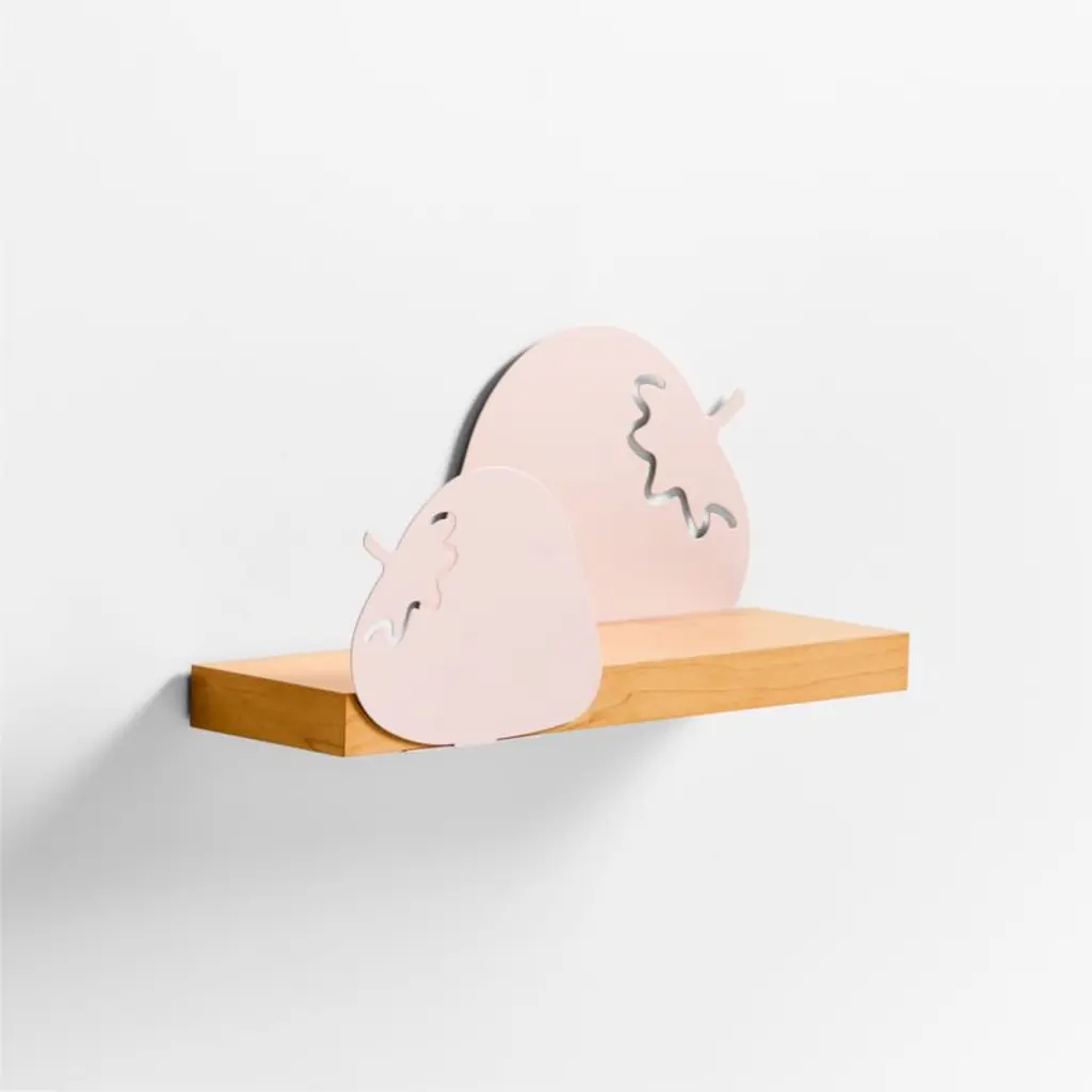 Bring cheery vibes and extra storage space to your kid's bedroom, craft space or nursery with our Metal and Wood Strawberry Wall Shelf. The laser-cut strawberry silhouettes with their pink powdercoat finish add a playful touch to any room. Use the shelf to display books, toys and other favorite treasures.