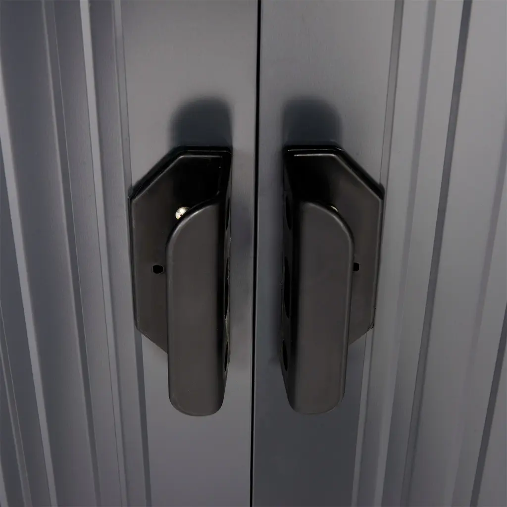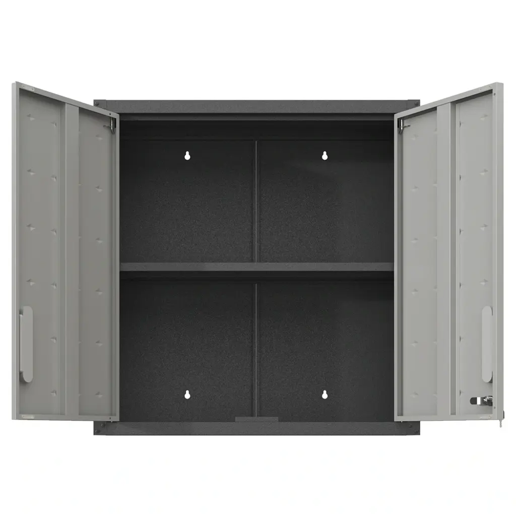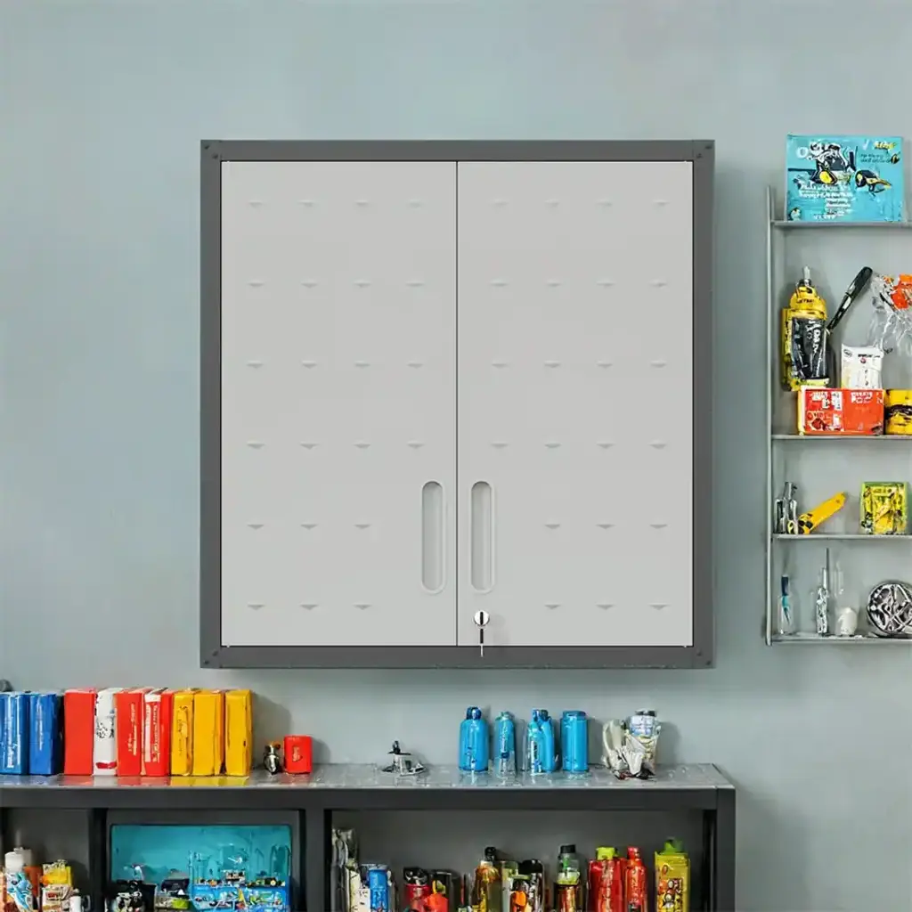 Product Features Thickened alloy steel material: the cabinet frame is made of thickened alloy steel, and the single cabinet can bear 100 pounds, and can store tools, instruments and other heavy objects; The laminate supports up-and-down adjustment, adapts to articles with different heights, and the surface is sprayed with electrostatic powder to form a corrosion-resistant coating (salt spray test ≥96 hours), which can resist the damp and dust environment of the garage, and is not easy to rust and fade after long-term use, and is suitable for outdoor or high-humidity scenes. Wall-mounted design+flexible storage: 30.35"H×29.5"W×11.8"D, occupying only 2.4 square feet. Wall-mounted installation does not occupy ground space, especially suitable for garage, storage room or small apartment wall; About 76L (equivalent to 25 standard shoe boxes), the interior of the double door is divided into two layers (including an adjustable laminate), which can store tools, cleaning supplies, documents, etc. Double-lock safety system: equipped with 2 mechanical locks (key or combination lock is optional), which can be locked independently, and can manage valuables (such as spare keys and medicines) and ordinary sundries in different areas, with reliable anti-pry performance; It is suitable for families to store important documents and jewelry, or to control dangerous goods in commercial scenes (such as schools and warehouses) to prevent children from touching or taking them without authorization. Minimalist design+versatile appearance: with rivet-free exposed design, the lines are neat, which adapts to the mechanical sense of garage, the modern minimalist style of home or the business atmosphere of office; Support the independent use of a single cabinet or the installation of multiple cabinets side by side, create a whole wall storage system, and improve the cleanliness and storage capacity of the space. 30-minute rapid assembly: the pre-drilled hole is accurate, with a full set of installation tools (screwdriver, expansion screw) and graphic instructions. A single person can complete the wall-hanging fixation within 30 minutes. The key steps are to scan the code and watch the video tutorial to reduce the installation difficulty.