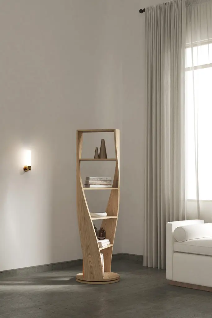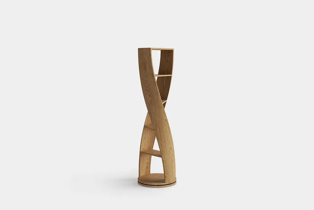MYDNA is a chic and contemporary storage system inspired by the DNA concept: both by its sophisticated double helix shape, and by the metaphorical statement that everything you place on it defines a significant part of your personal identity. MYDNA Bookcase Mini is part of MYDNA collection designed by Joel Escalona and its fabricated in Mexico City in plywood and heavy-duty fibers.NONO is a Mexican design brand with more than 10 years of experience dedicated to the production of interior furnishings, editions, and custom-made projects. At NONO, we create pieces of extraordinary beauty, accommodating the particular needs and tastes of each client with exclusive high-quality designs.Joel Escalona is a Mexican designer, difficult to define with a single word. His constant search for clarity, integrity and harmony led to his development as a designer with an obvious inclination towards visual arts, such as painting and sculpture. Joel’s work is characterized by thorough and elegant processes, sometimes creative, other times productive and on occasion, a bit introspective. In his work, it is possible to find glimpses of his charismatic and ironic personality, resorting to elements such as lyric, humor and poetry as attributes that are in constant connection throughout his body of work.———Some details to consider when placing an order with us:• Catalog images are digitally generated. Actual products may slightly vary in texture, grain, and final finish due to natural material differences. Despite these variations, our expertise ensures each piece maintains high quality and matches the intended design.• All of our products are made to order, and the lead time for standard products is estimated to be 9 to 12 weeks, plus shipping time. However, special pieces or sculptures may require a longer lead time.• We offer customization in dimensions and finish for all of our furniture pieces, which may result in additional charges.• We only facilitate freight services by a third party. The client is solely responsible for any associated import/export taxes, as well as any necessary customs paperwork.• We are not responsible for any damages that may occur during shipping or for any customs-related delays.
