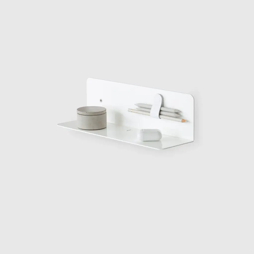 This miniature wall shelf is extremely versatile. Put smaller artifacts out on display or keep as a bedside ledge for mobile devices. Its reversible design allows you to create endless styling options. Pegs, Bands, and other accessories sold separately.