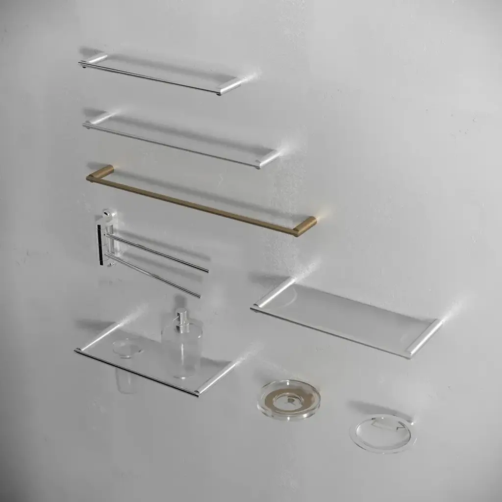 Mirto is a glass bathroom shelf, part of the homonymous collection.Always committed with producing and spreading the values of the Made in Italy philosophy, Alna offers for more than 25 years, bathroom accessories and complements full of personality and reliability that are safe and environmentally-friendly.Experience, high professionalism, attention to details are at the base of Alna’s corporate imprinting that proposes refined and user-friendly objects with a pure Italian Dna, unalterable such as the materials used: chrome plated brass, stainless steel, aluminium, ceramic and glass.Passe-partout lines, with essential but elegant and strict shapes that fit with formal simplicity and immediacy of use in every contest, guaranteeing comfort, safety and design to objects and daily gestures, able to satisfy also the needs of Hotel Facilities and Contract through the production process and elevated quality standards required by the certification UNI EN ISO 9001.