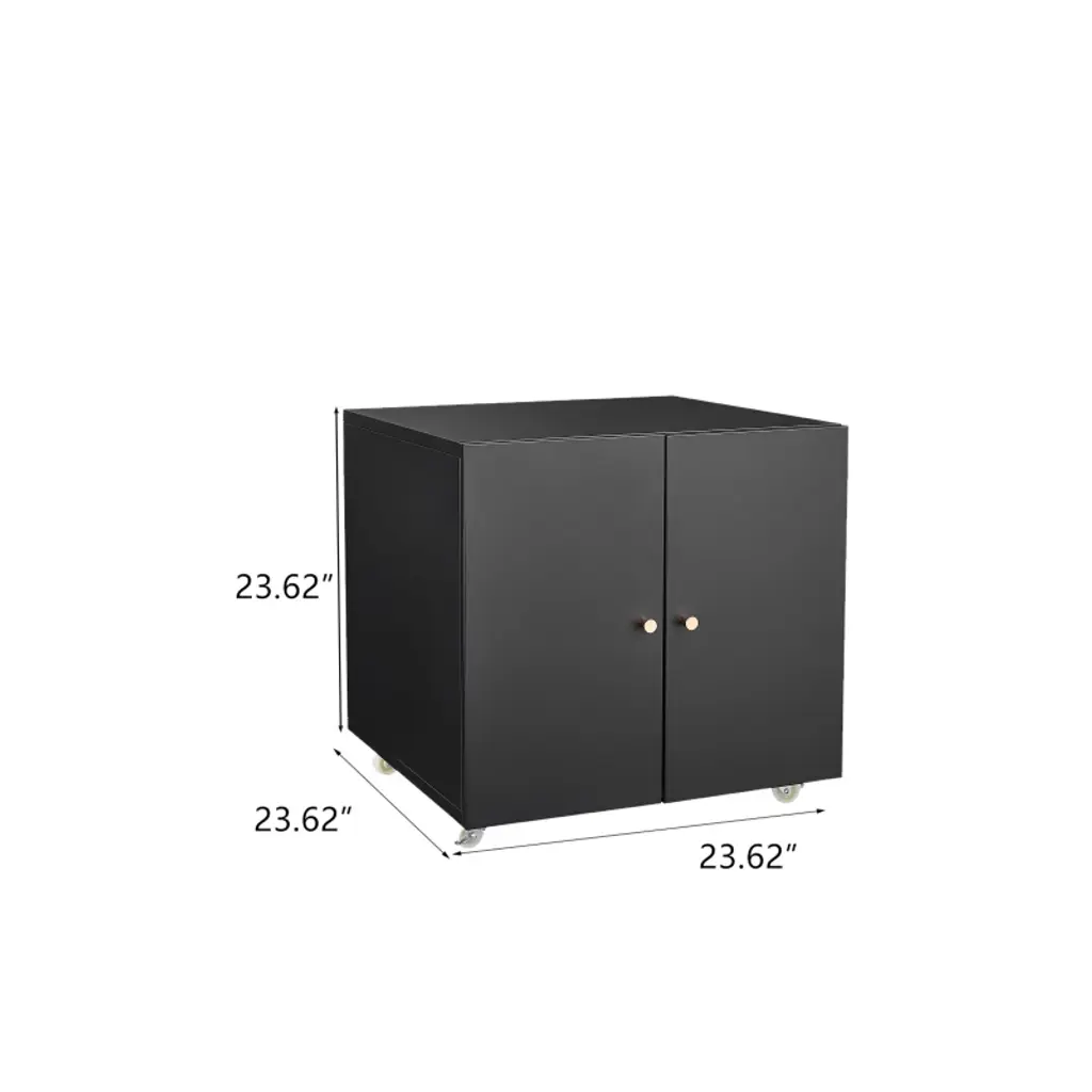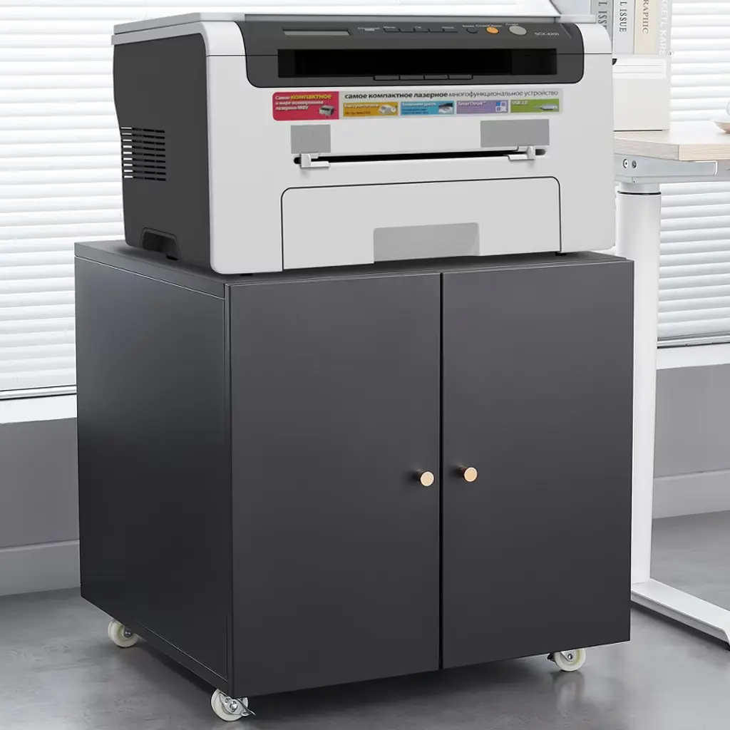 This versatile metal printer designed with a sturdy metal frame, it offers ample storage with an adjustable shelf and a convenient cabinet door. The stand is mobile, featuring four universal wheels for easy movement, with two lockable for stability. Ideal for holding heavy-duty printers or copiers, this compact unit is suitable for use in conference rooms, offices, or next to desks. Material: Durable metal frame for long-lasting use. Mobility: 360° rotating wheels with lockable front wheels for stability. Dimensions: Measures 23.62 x 23.62 x 23.62 inches and weighs 30 lbs; requires assembly.