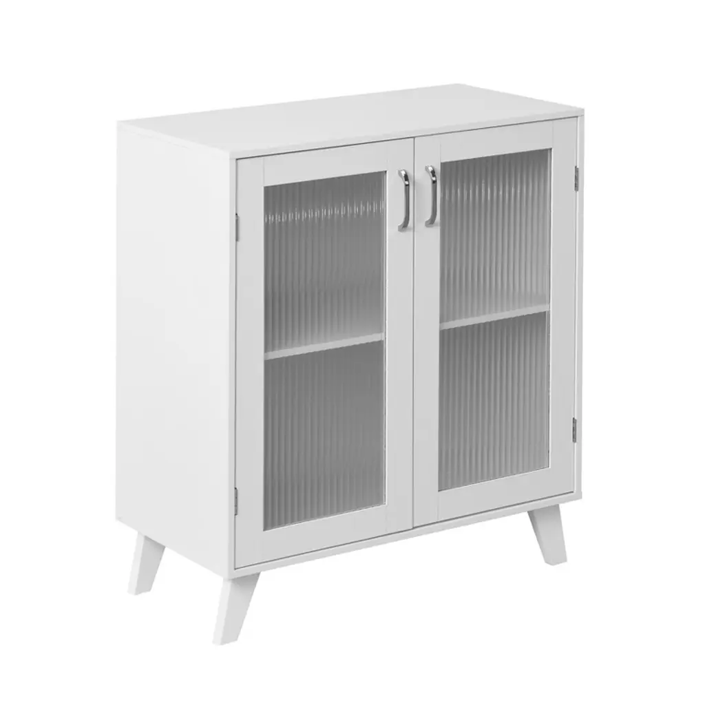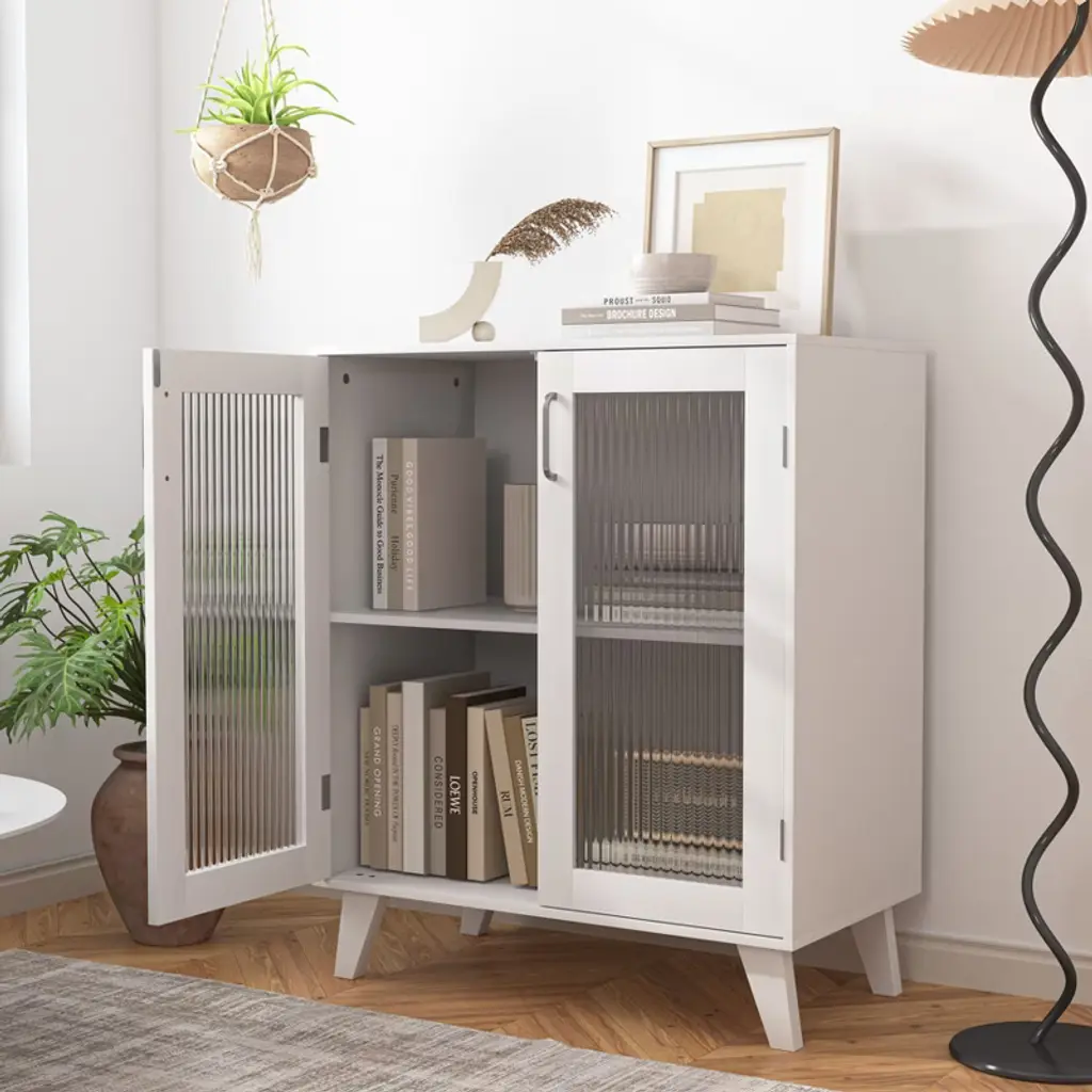 Modern Living Room Cabinet Storage Organizer With 2 Glass Doors And Adjustable Shelf White