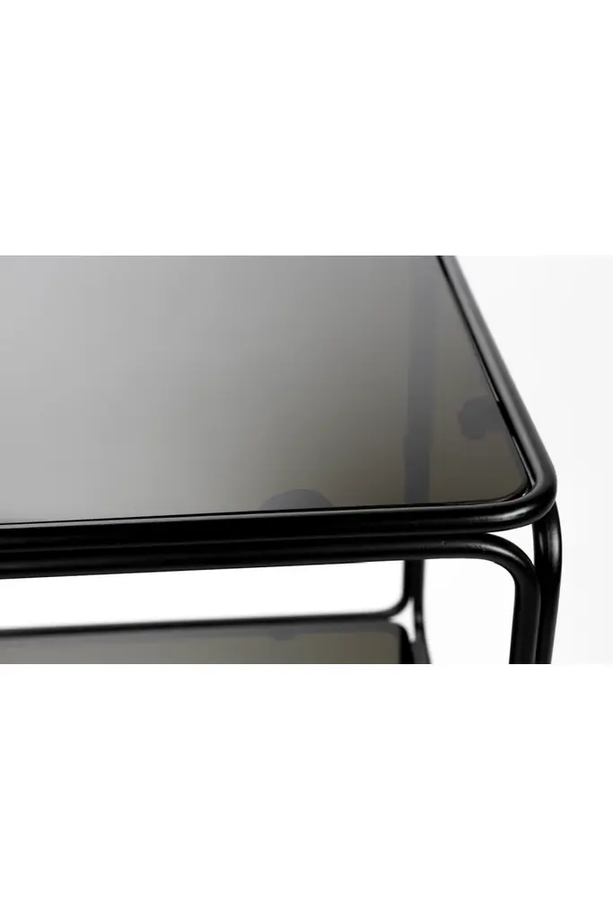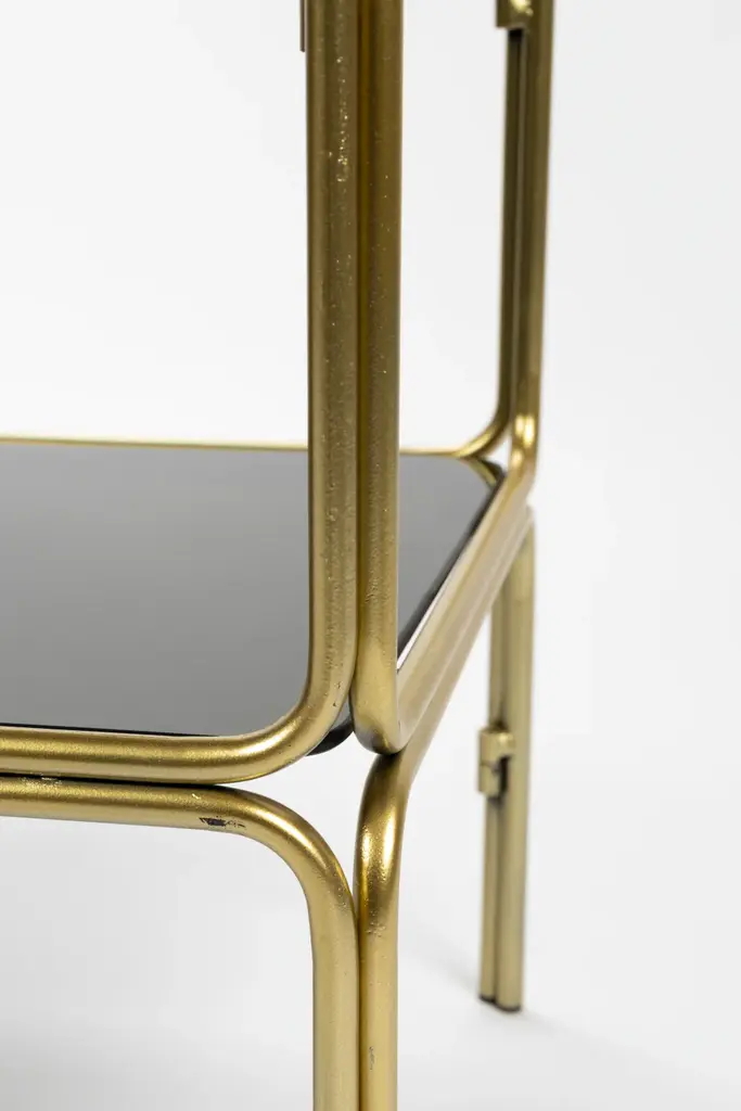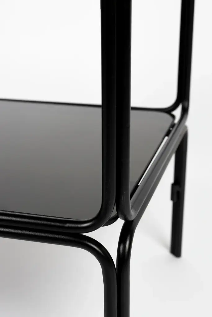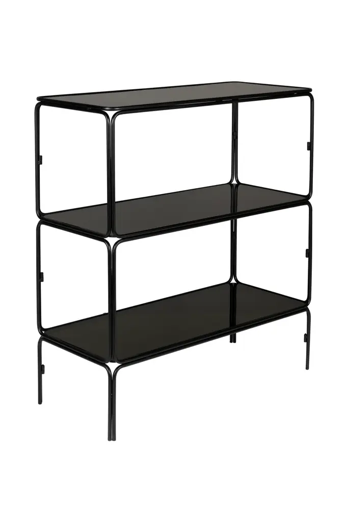 A classic three-layer shelf updated into a modern look with smooth glass shelves and a slender black iron frame. Liah by DF offers generous open space to display your well-loved books, collectibles, or other pieces of your choice.