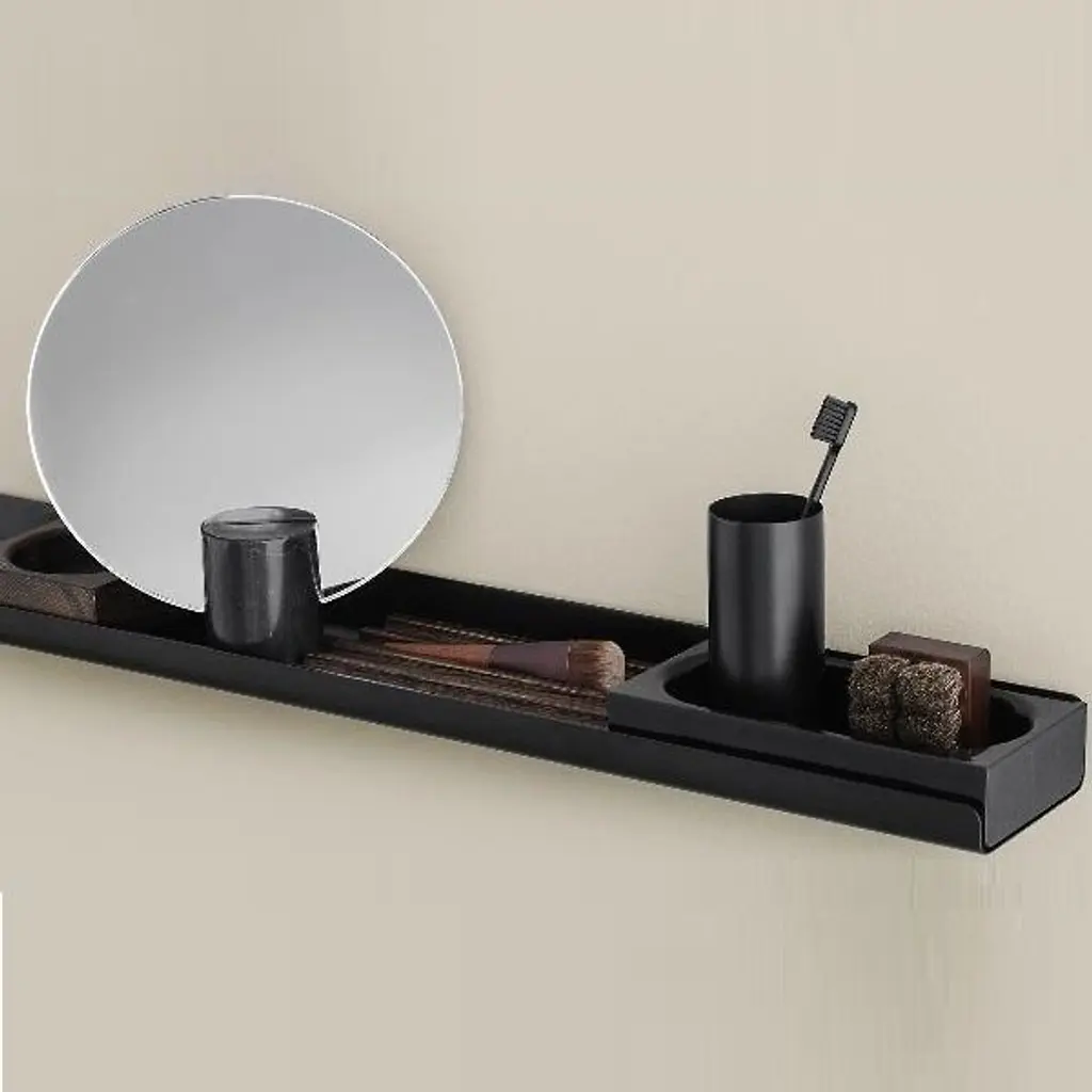 Add storage and style to any space in the home with the MODO Wall Shelf from Blomus. It was designed to partner with the MODO Acrylic Tray, the MODO Wood Tray, and the MODO Square Wood Tray. A clean and modern design, this shelf forms a seamless surface with a lifted edge to ensure items stay put. Its titanium-coated stainless steel composition ensures lasting durability while offering a sleek surface that can easily integrate into bathroom or bedroom décor.