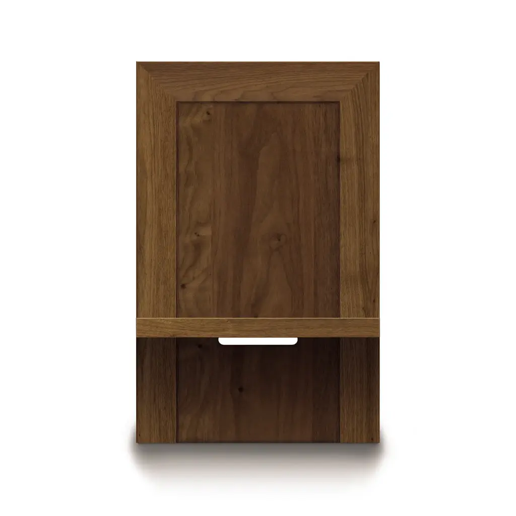 The Moduluxe Attached Nightstand with Shelf is a sectional piece of furniture from the highly configurable Moduluxe bedroom collection. This nightstand must be connected to a 29" Moduluxe Platform Bed as it is an integrated piece of furniture and cannot stand alone. Available in two width sizes, 18.5"w or 24"w. The Moduluxe Bedroom furniture pieces are made to order. Our modern Moduluxe Bedroom Furniture Collection is handmade in Vermont using eco-friendly, sustainably harvested natural woods.Base price represents 18.5" wide nightstand in natural cherryShown in 18.5" wide in natural walnutMatching furniture available in our Moduluxe Furniture CollectionNatural variations in solid wood and hand applied finishes make each piece unique. Slight grain and finish irregularities tell you that the furniture has been crafted from solid wood and are considered hallmarks of quality.