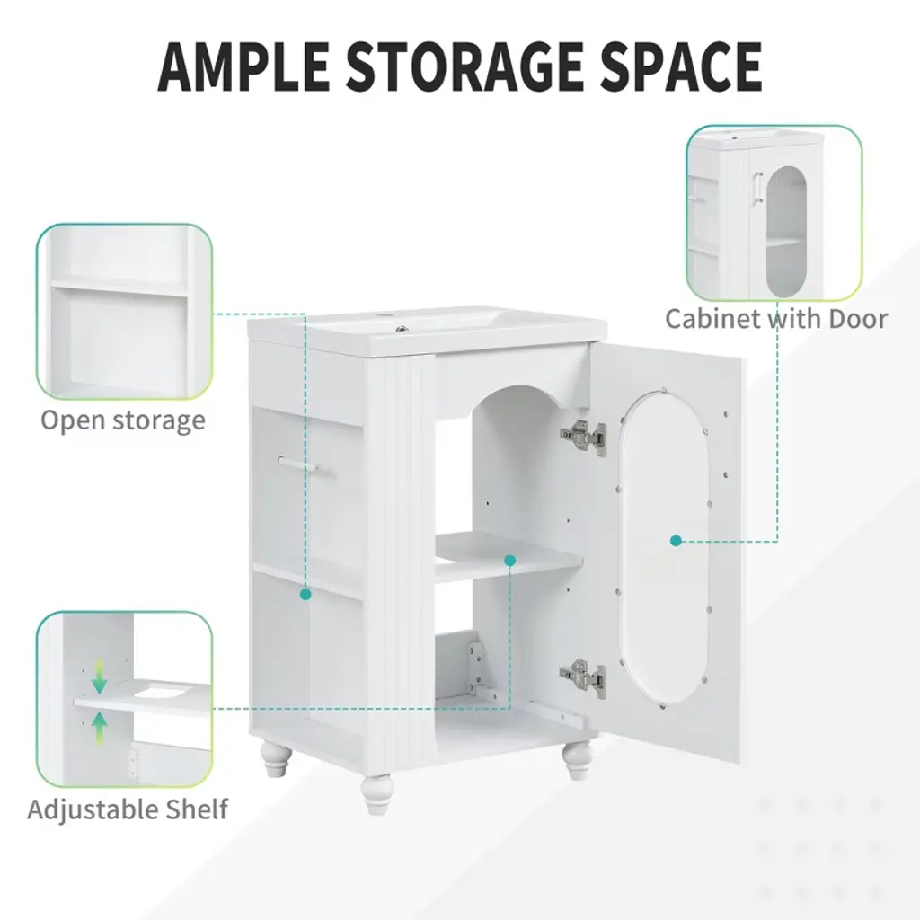 Moepisy 20 Inch Bathroom Vanity With Sink, Bathroom Vanity Cabinet With Two-tier Shelf, Adjustable Shelf