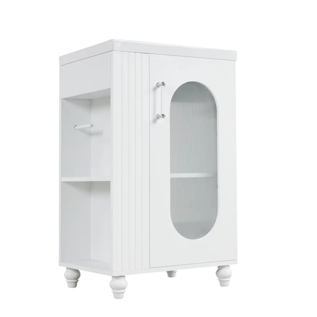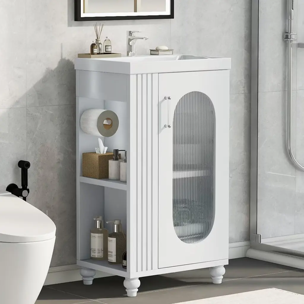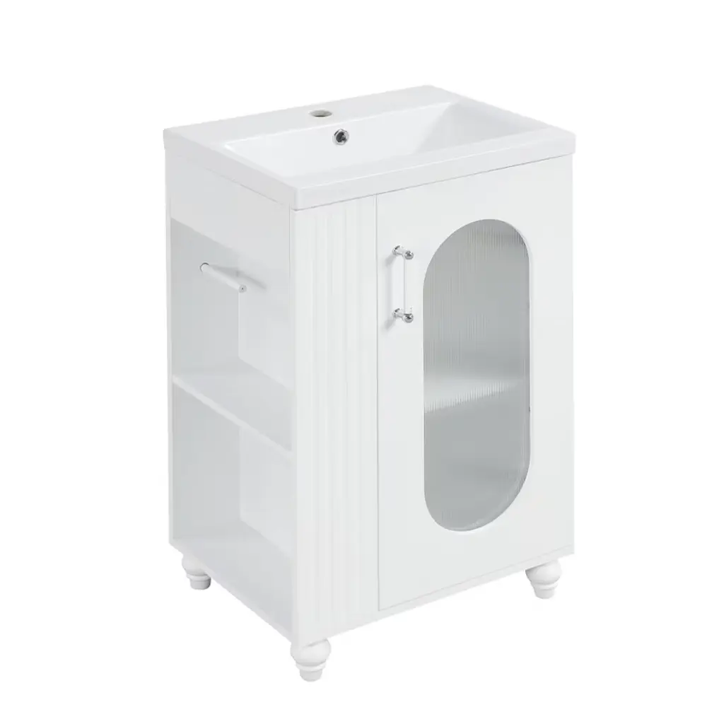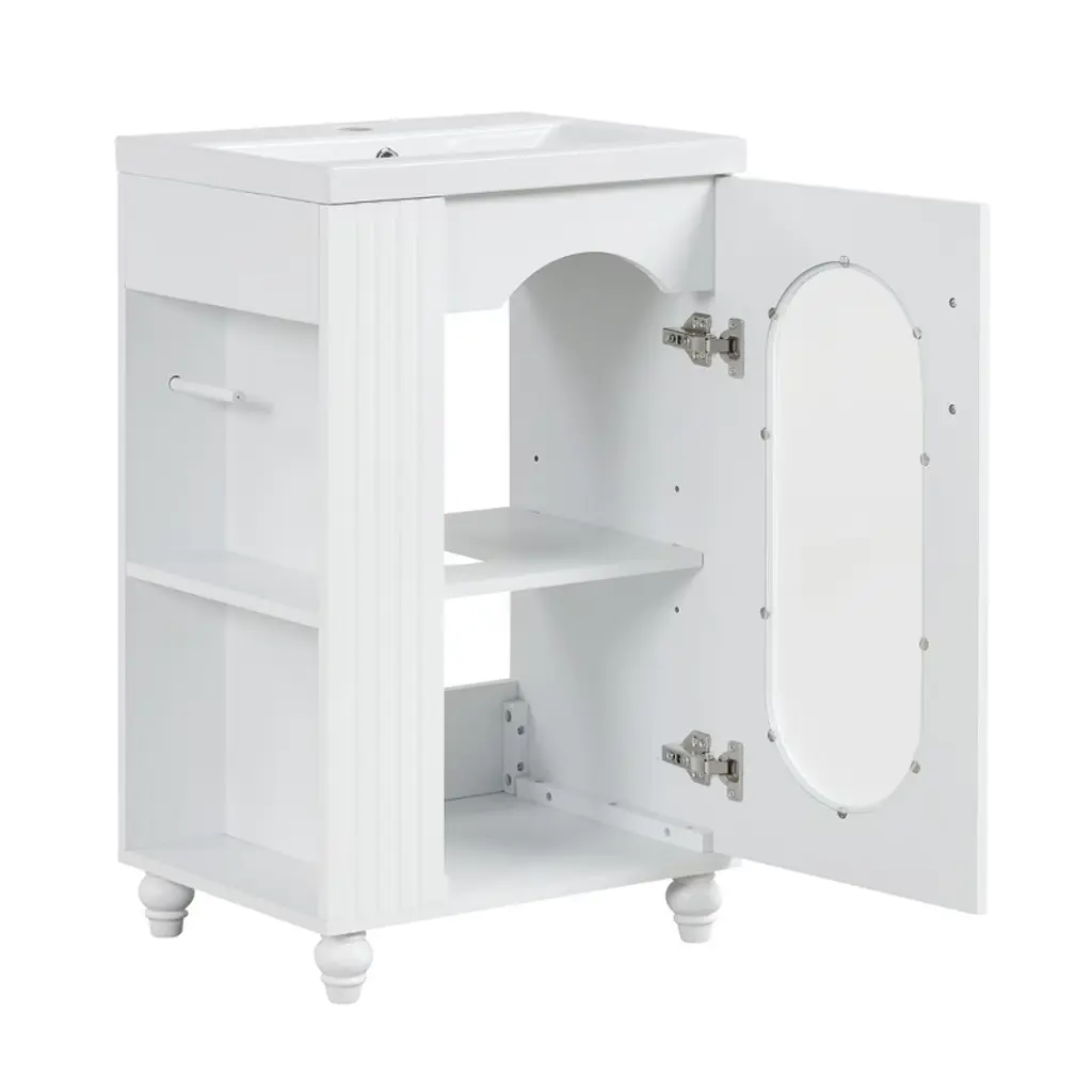 Material - Practicality and durability is important to bathroom facilities, so we use MDF boards for this product, which not only increases the product stability but also ensures a long-lasting use. It is water-proof, stain proof and very easy to clean. Ceramic Sink - The sink is made of ceramic and equipped with a hole for faucet mount. It is very easy to clean that you can keep it smooth and shinning effortlessly. Single hole faucet will fit this sink (not included). Vanity with Cabinet & Toilet Paper Holder & Shelf - This bathroom vanity has different storage space: one cabinet with door, two-tier storage shelf on the side, and toilet paper holder. You can put soaps, towels, shampoos, tissue paper and other bathroom essentials in it. Assembly Required - This bathroom vanity with sink, needs assembly, is in one package. All the hardware and instruction manual are provided. Adjustable Shelf - The shelf in the cabinet is adjustable and can be adjusted into three heights to allow you to place body lotion, shampoo, and soap etc. in different size.
