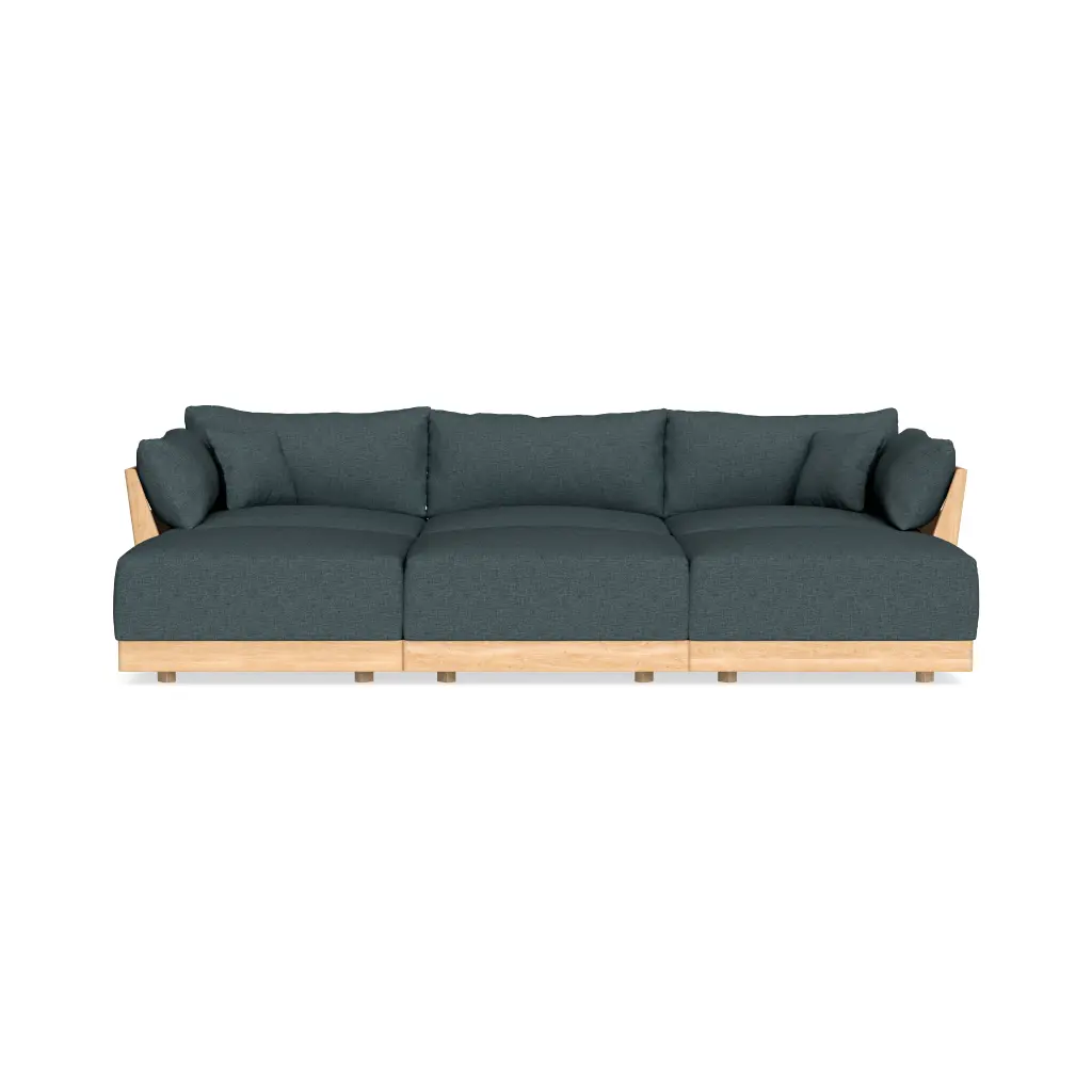 Moooi Triple Seater Sofa So Good In Denim Light Wash Foam With Table And Shelf