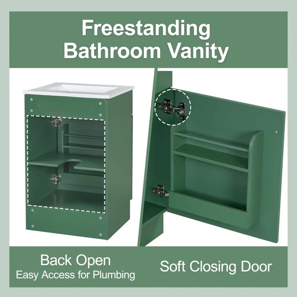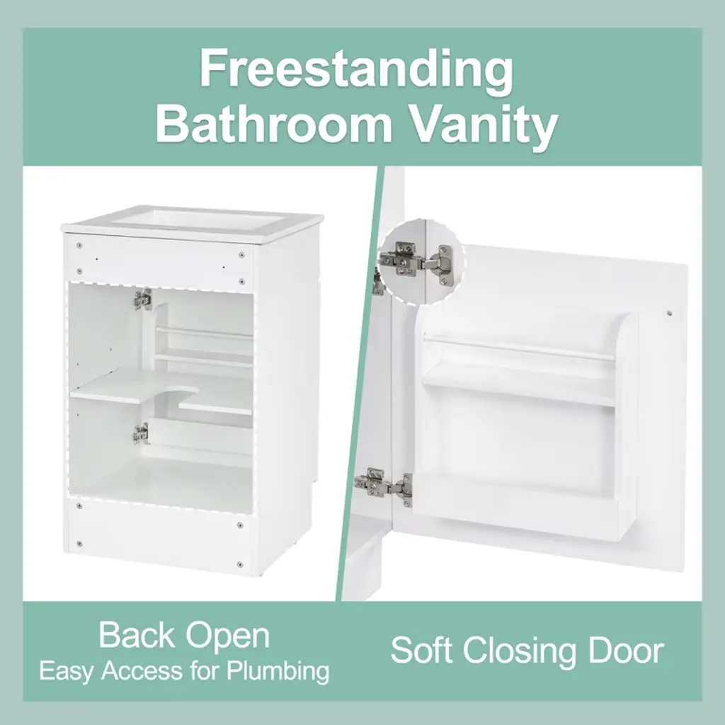 Mshliw 20 Inch Bathroom Vanity With Sink, Freestanding Cabinet With Soft Close Door And Adjustable Interior Shelf, Compact Design(white)