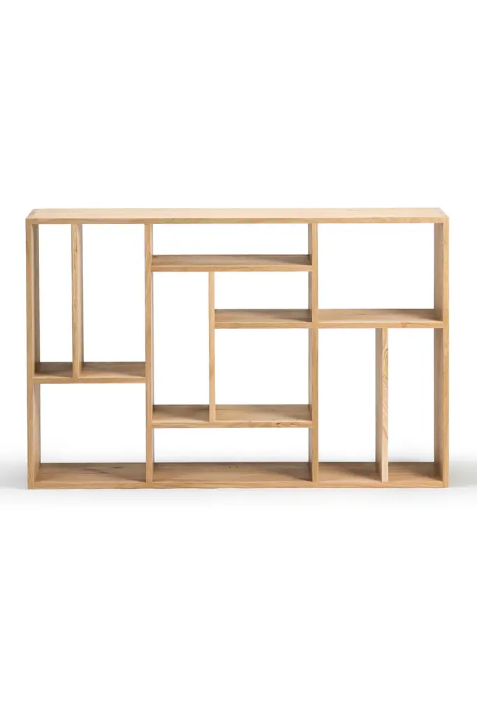 Organize your books or decorative items in an exquisite display with the Multilevel Shelf Bookcase by Ethnicraft. This Mondrian-inspired M rack pays homage to the renowned Dutch painter, translating his iconic grid of intersecting vertical and horizontal lines into a functional masterpiece. Crafted from solid oak or teak, it goes beyond mere storage, transforming your space into a canvas of geometric elegance.