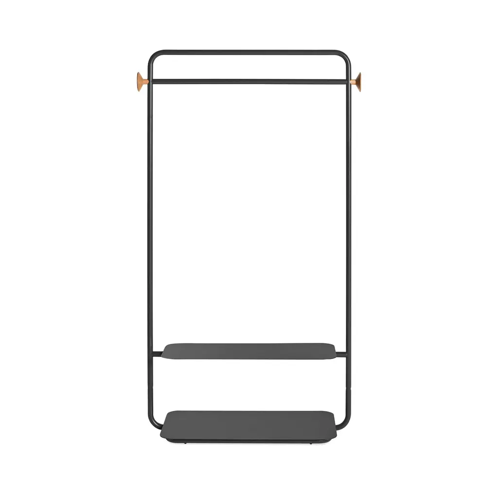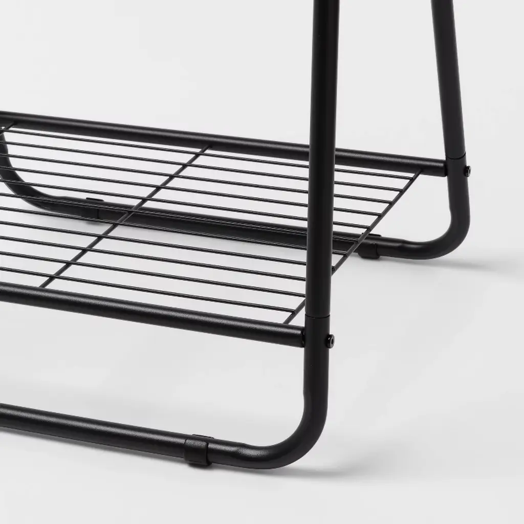 Keep your clothes and footwear organized in one spot with the Narrow Clothing Rack with Shoe Shelf from Brightroom™. This black rack features a pyramid-like design, enough hanging space for your clothes, and a built-in shelf to organize your shoes. Made with a metal frame, this rack is a perfect home addition.Brightroom™: See your space in a new light.