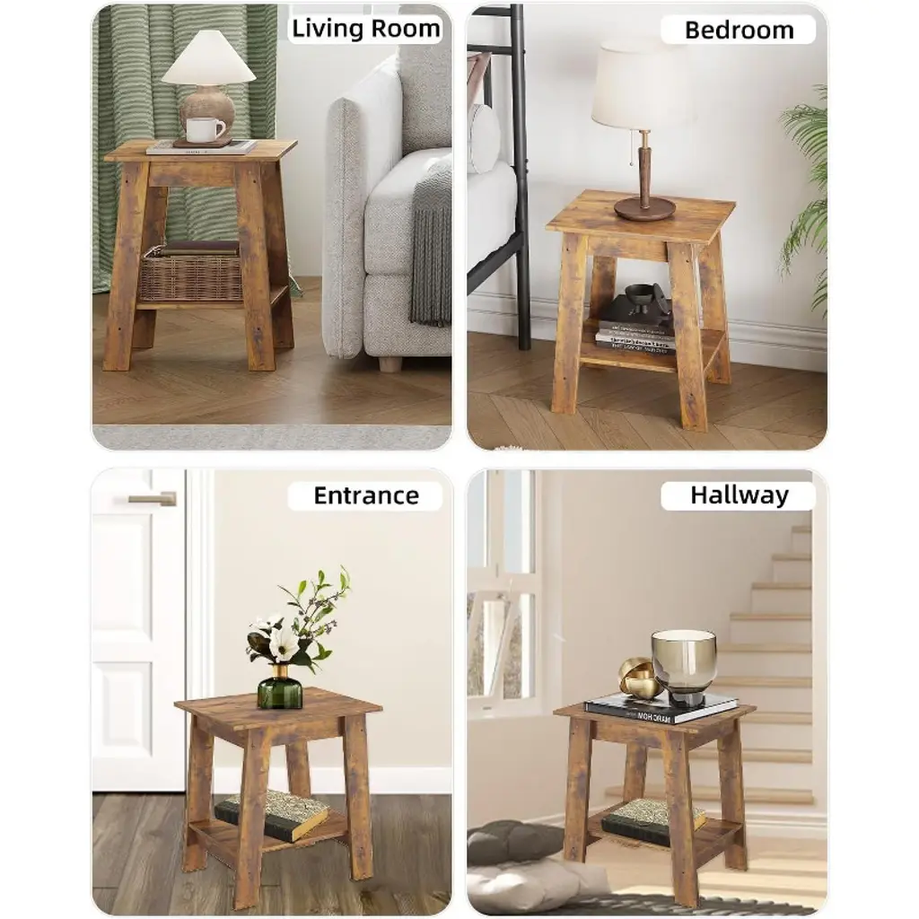 End Table, Small Side Table, Nightstand with 2-Tier Storage Shelf, Wood Bedside Table, Narrow Side Table Living Room, Side Table for Small Spaces, Bedroom, Entryway, Farmhouse