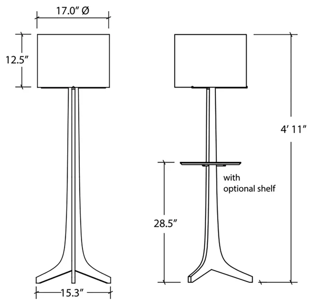 Efficiency and simplicity guided the design process for the Nauta floor lamp. We designed the Forma several years ago with Frank Carfaro of Desiron, which profoundly influenced the Nauta''s form. Our goal was to distill the Forma design without compromising it. The Nauta floor is clean, modern, and priced competitively. Features: -Handmade in the USA-Eco Friendly-UL rated-Suitable for Damp LocationsSpecifications: -Requires 1 x 13.5W A19 E26 Medium Base LED Bulb (Included).-Voltage: 250 VAC max-800 Lumens, 90 CRI, 2700K - Warm White Color Temperature-Shelf Height: 28.5"Eco-friendly packaging