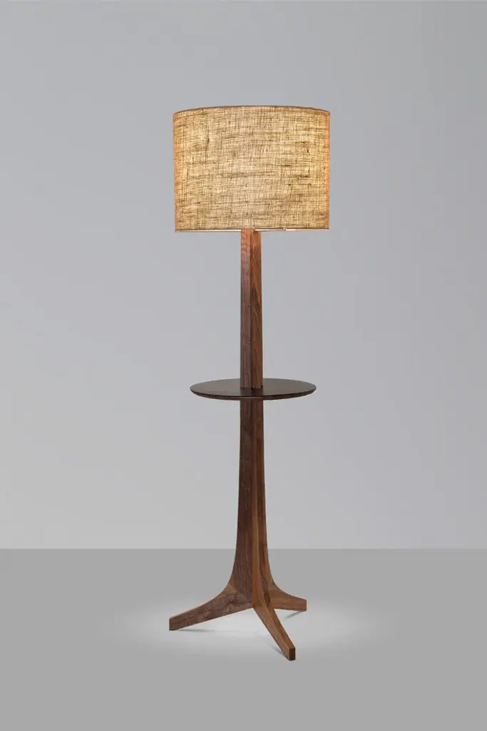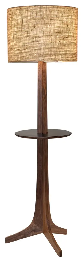 Nauta Floor Lamp, Brushed Brass, Walnut, Burlap/black Hpl Top Surface, Matching Wood Shelf With Black Hpl Top Surface