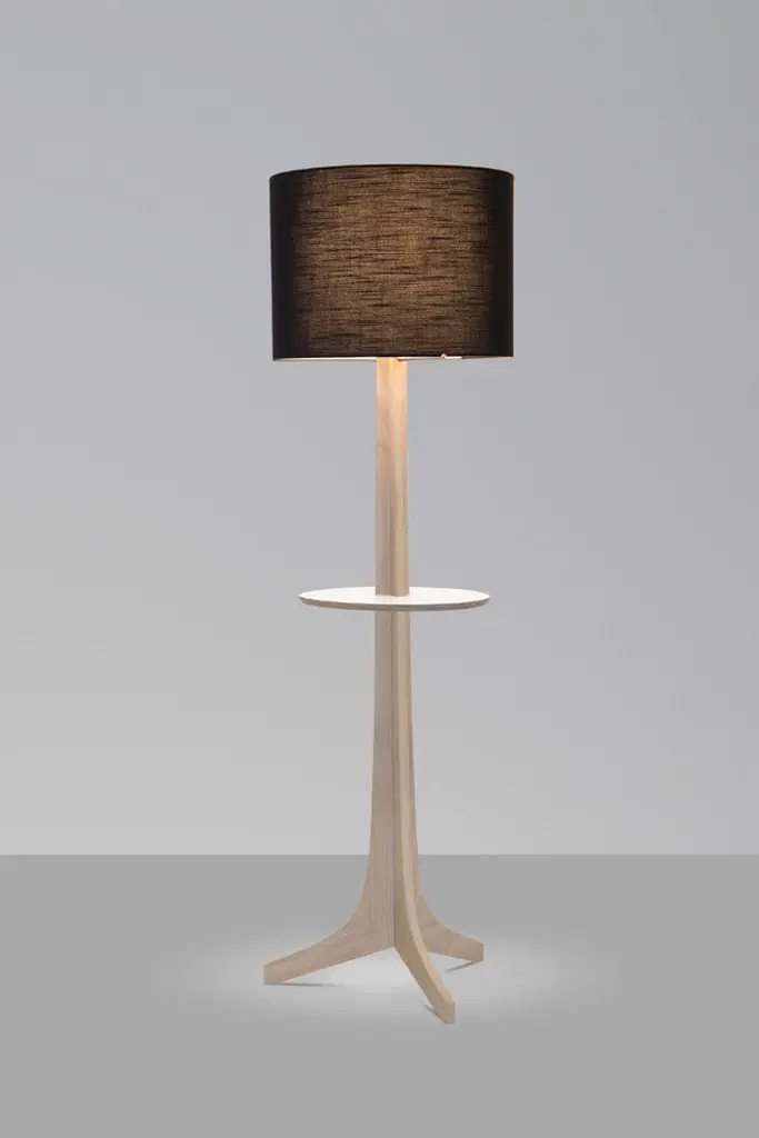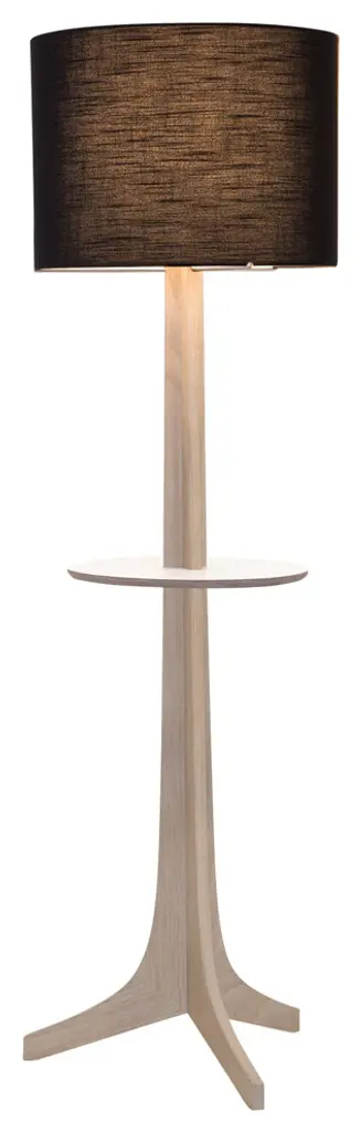 Nauta Floor Lamp, Brushed Brass, White Washed Oak, Black Amaretto/white Hpl Top Surface, Matching Wood Shelf With White Hpl Top Surface