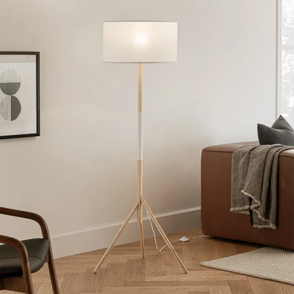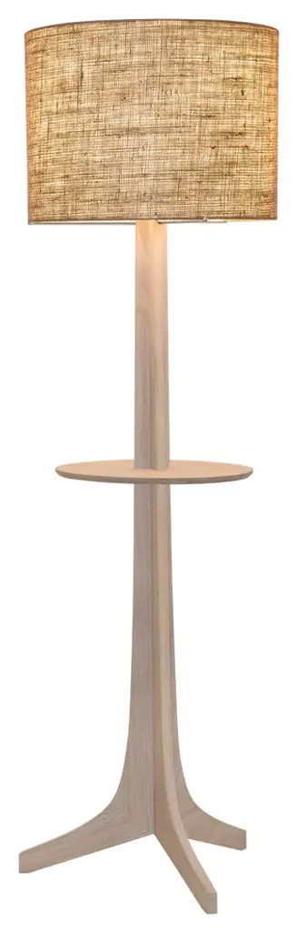 Nauta Floor Lamp, Brushed Brass, White Washed Oak, Burlap/exposed Top Surface, Matching Wood Shelf With Exposed Top Surface