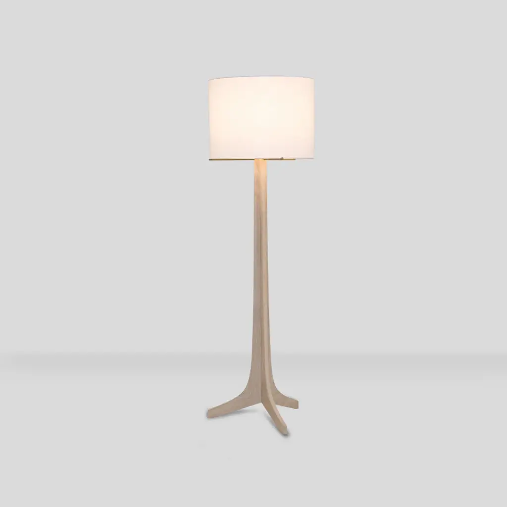 Nauta Floor Lamp, Brushed Brass, White Washed Oak, White Linen, No Shelf