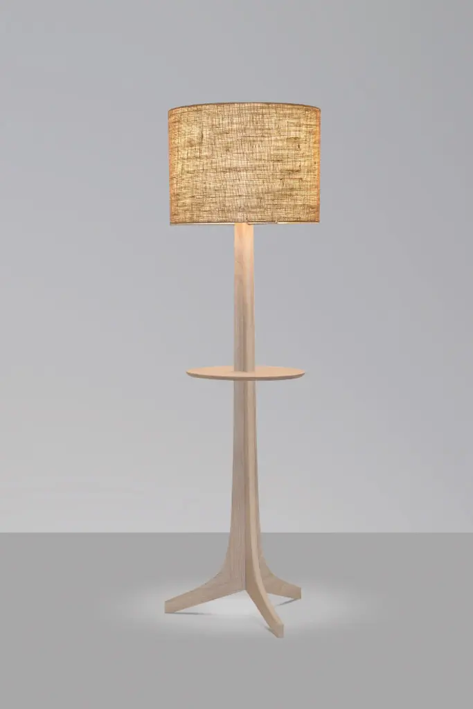 Nauta Floor Lamp, White Washed, Burlap/exposed Top Surface, Matching Wood Shelf With Exposed Top Surface