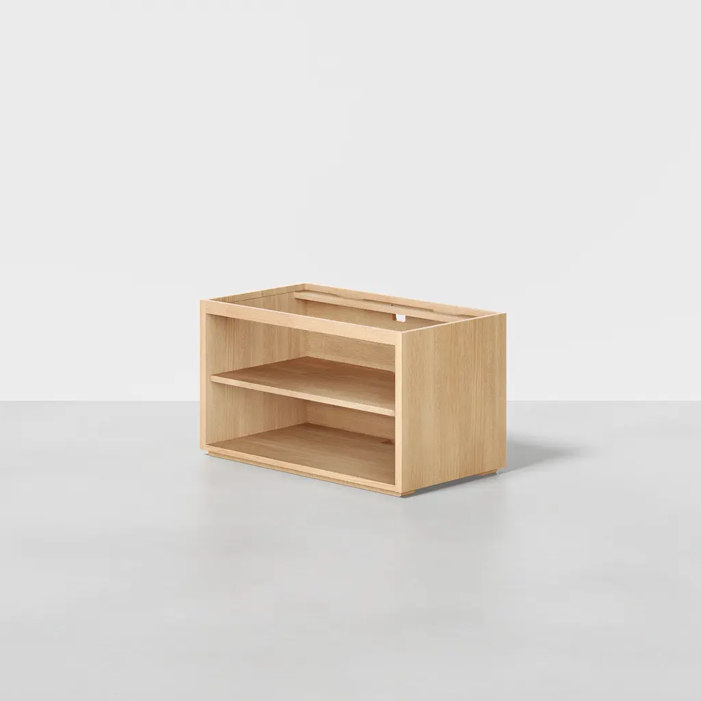 Modular design made simple. The Nest Shelf provides open-air space for essentials and is made from 100% upcycled wood. Add to an existing configuration with a Nest Base Shelf or Nest Stacking Shelf, for fully customizable, adaptive organization. Remove shelf, as desired. Do not stack more than 2 shelves or 47" vertically.