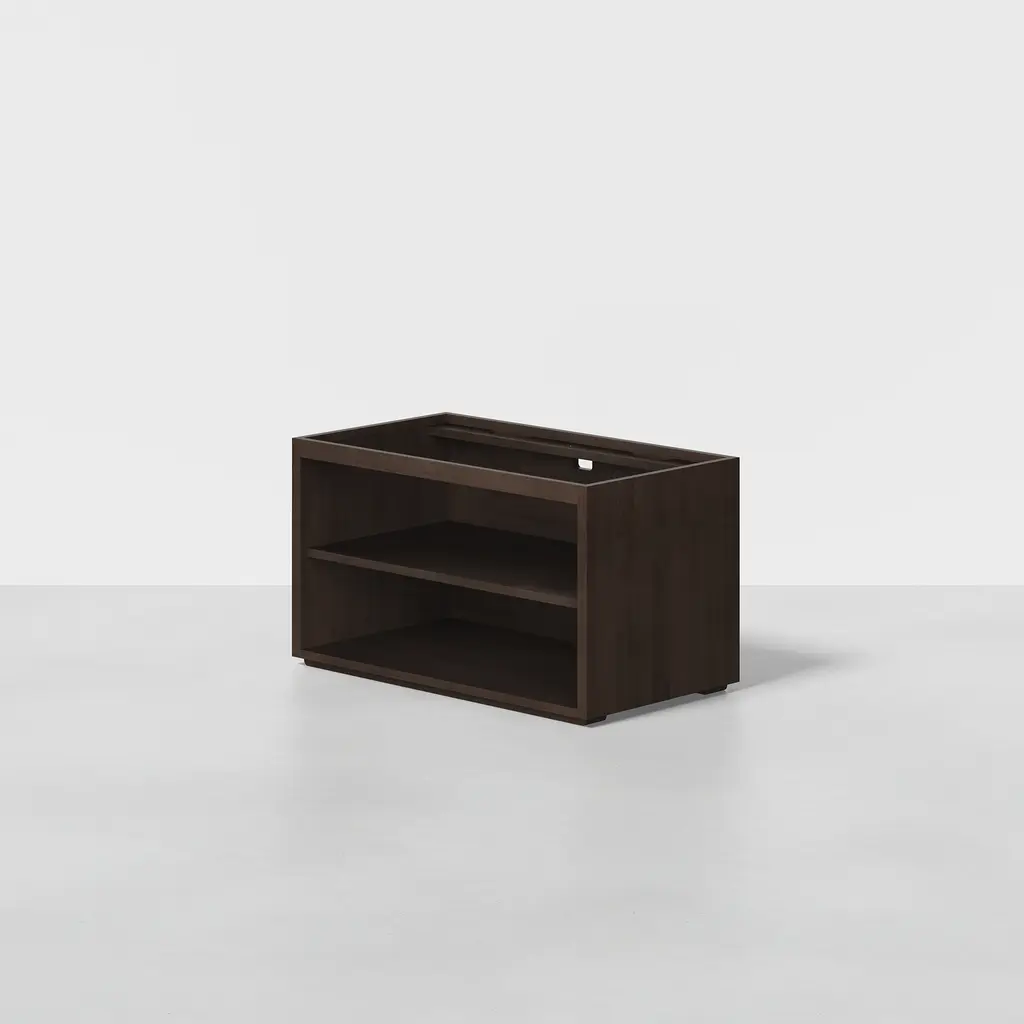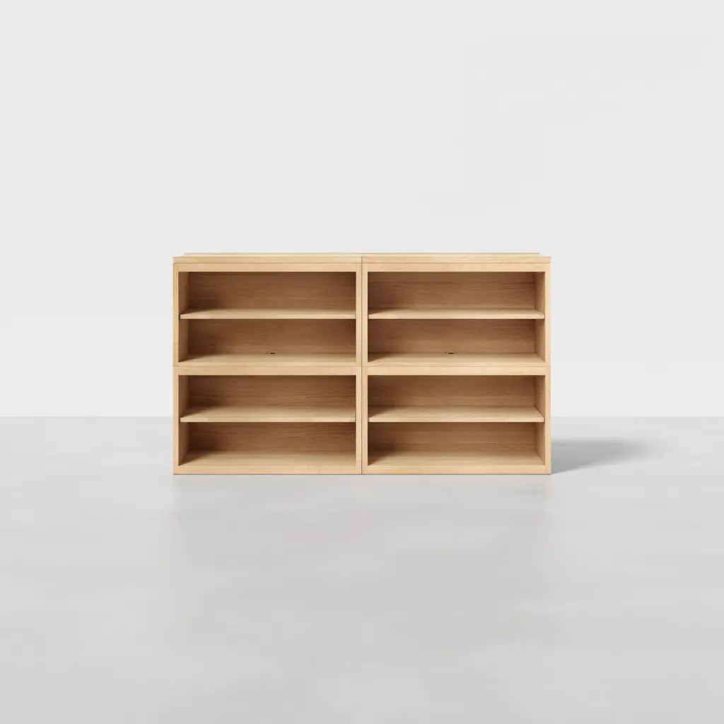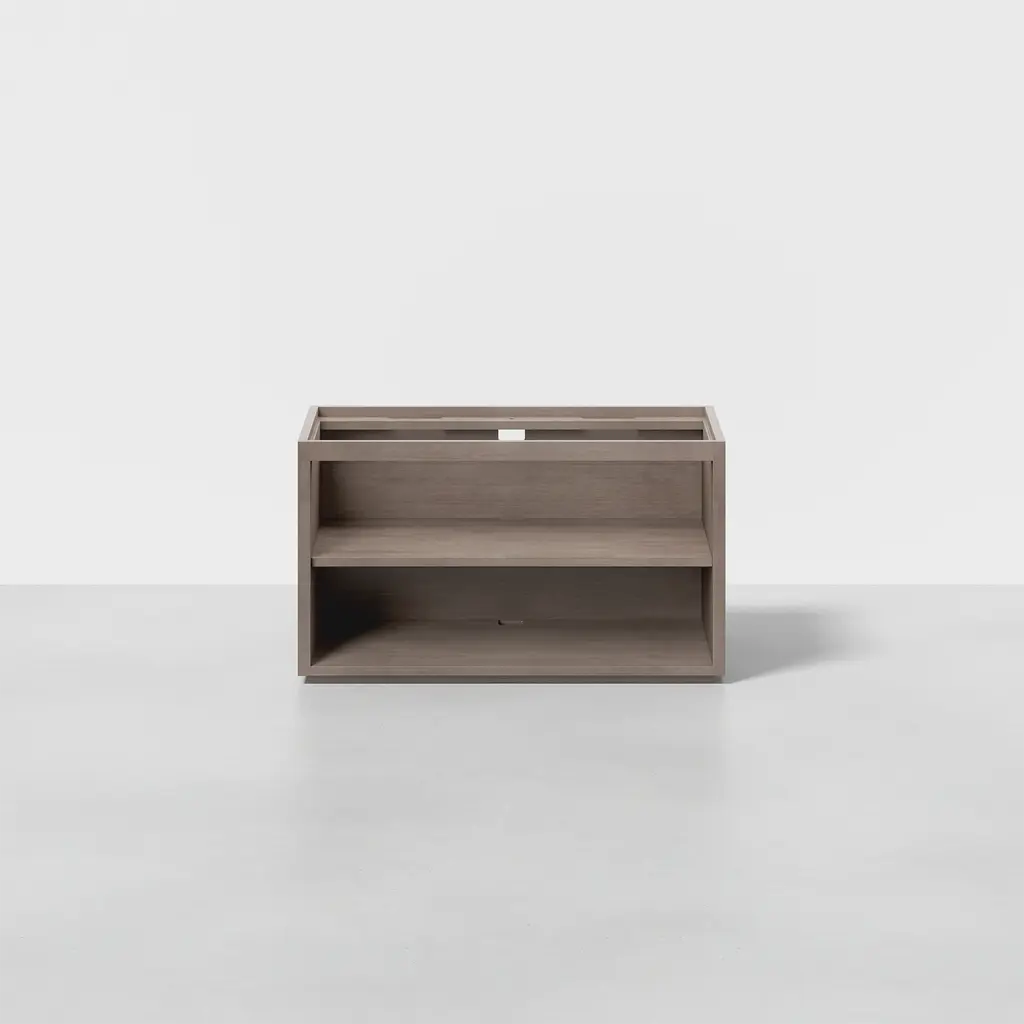 Modular design made simple. The Nest Shelf provides open-air space for essentials and is made from 100% upcycled wood. Add to an existing configuration with a Nest Base Shelf or Nest Stacking Shelf, for fully customizable, adaptive organization. Remove shelf, as desired. Do not stack more than 2 shelves or 47" vertically.