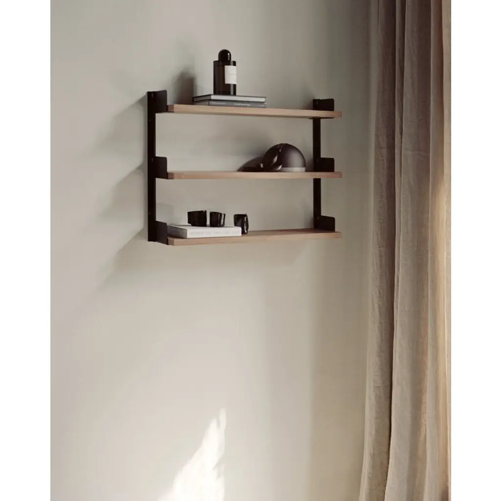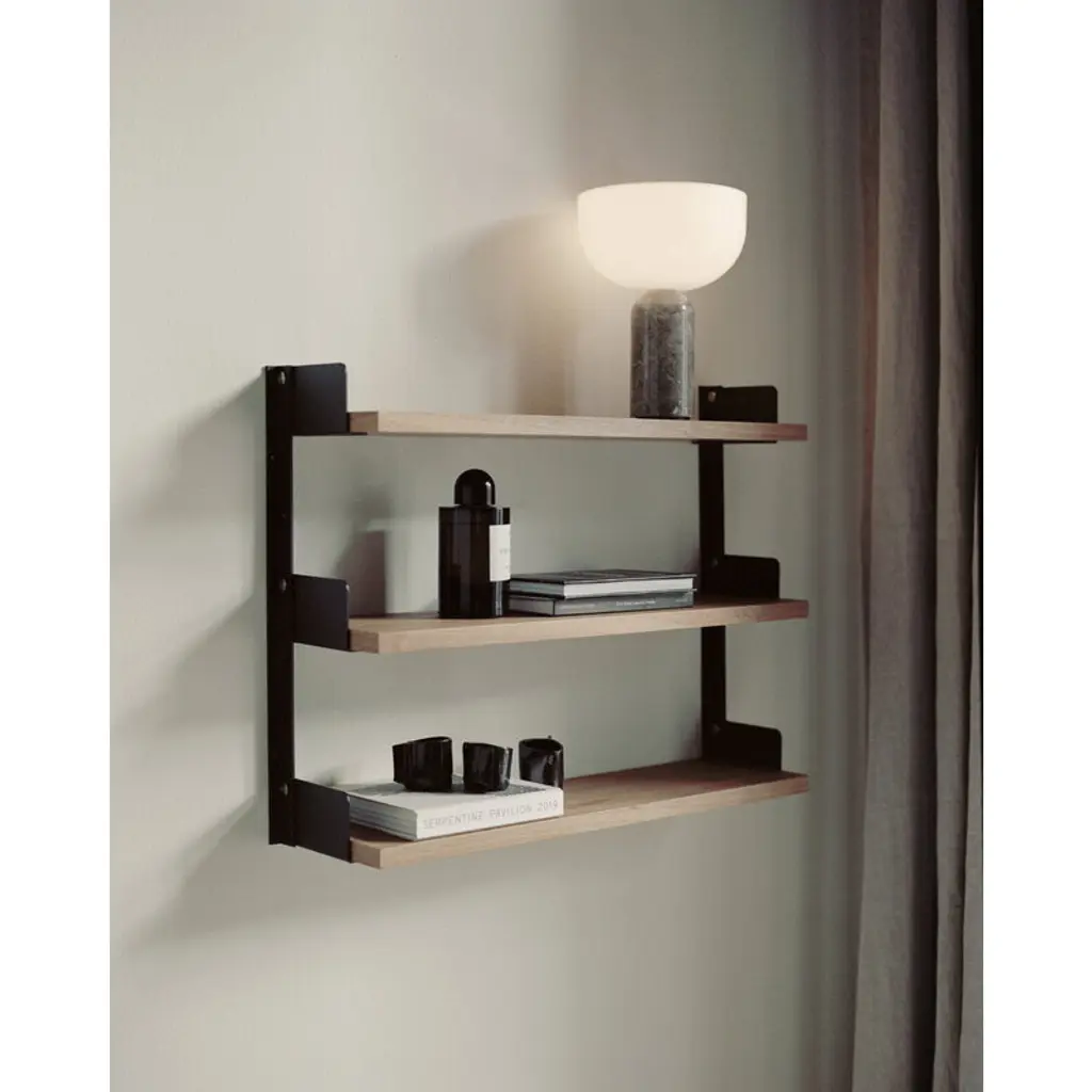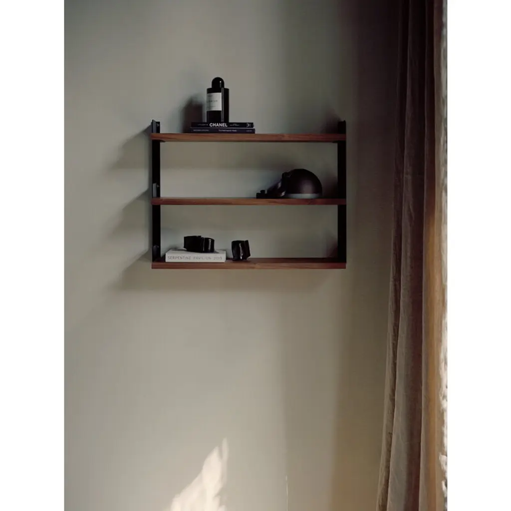 New Works Tea shelves help you to build a storage solution just right for you. Designed by Knut Bendik Humlevik, the minimalist shelving system blends effortlessly into different rooms and offers endless possibilities to adapt the storage concept to your changing needs. Small and discreet details add personality to the look of the Tea shelves, but don't draw the attention from the essentials: the items you place on the shelf. The timeless and minimalist design makes the Tea shelving system suitable for many different spaces, from homes to offices and other public spaces. This New Works Tea set consists of three walnut shelves and aluminum wall brackets. The ends of both shelves feature bookends to hold your favorite items in place – whether you're shelving books, tableware or decorative items.