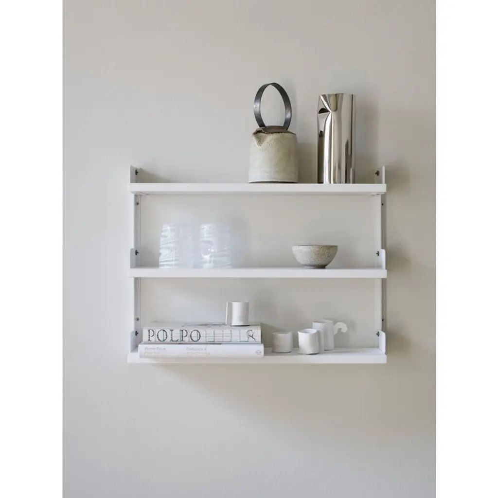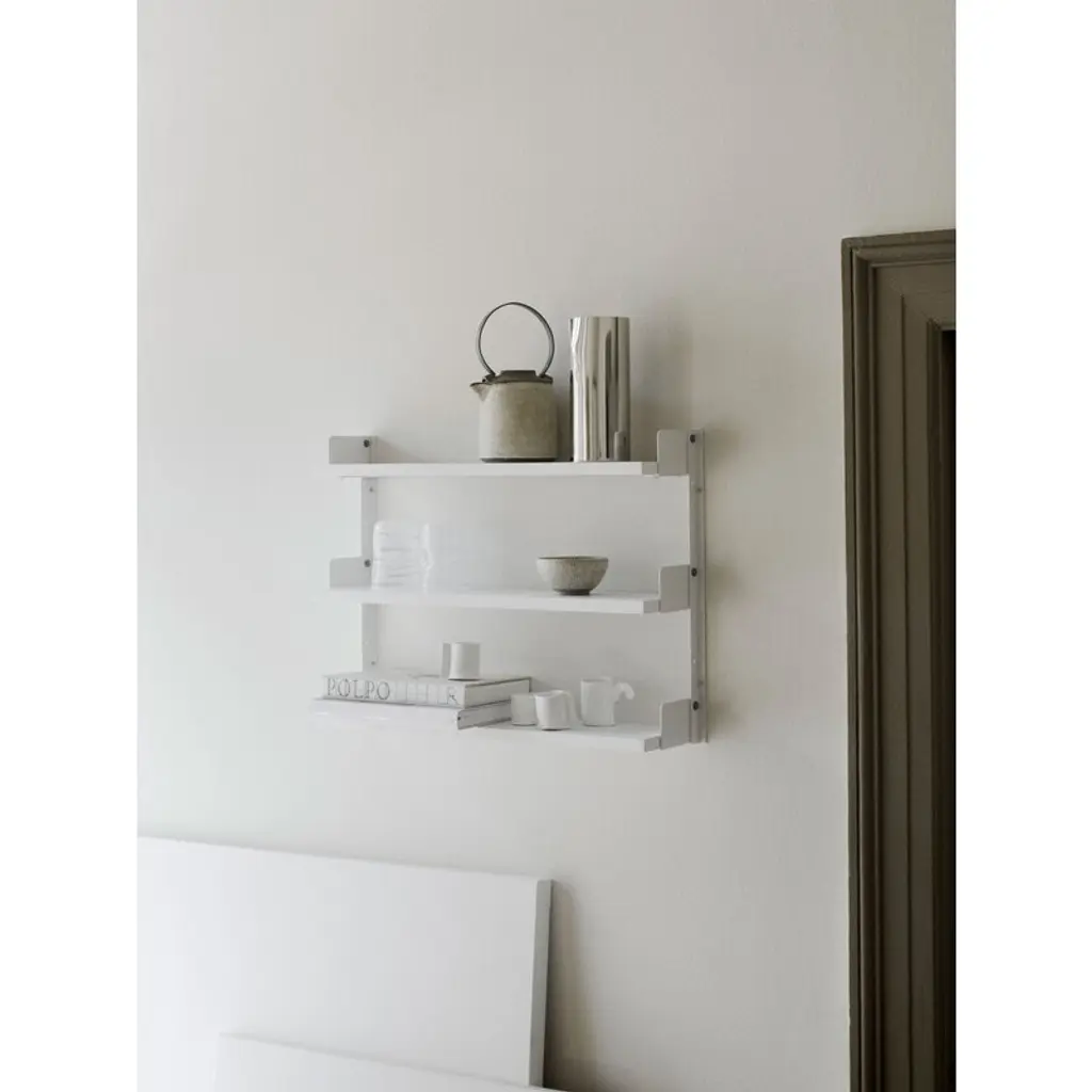 New Works Tea shelves help you to build a storage solution just right for you. Designed by Knut Bendik Humlevik, the minimalist shelving system blends effortlessly into different rooms and offers endless possibilities to adapt the storage concept to your changing needs. Small and discreet details add personality to the look of the Tea shelves, but don't draw the attention from the essentials: the items you place on the shelf. The timeless and minimalist design makes the Tea shelving system suitable for many different spaces, from homes to offices and other public spaces. This New Works Tea set consists of three shelves and aluminum wall brackets. The ends of both shelves feature bookends to hold your favorite items in place – whether you're shelving books, tableware or decorative items.