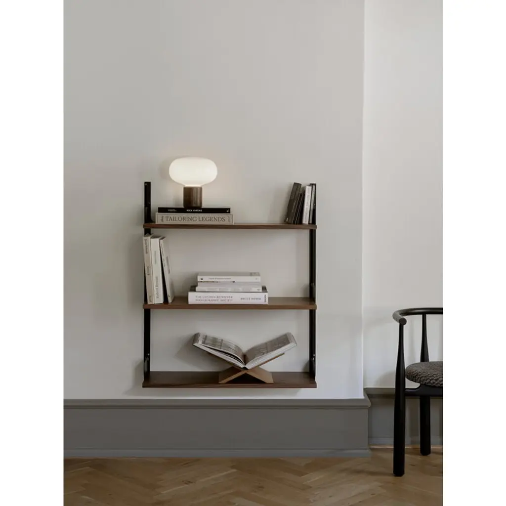New Works Wall shelves help you to build a storage solution just right for you. Designed by Knut Bendik Humlevik, the minimalist shelving system blends effortlessly into different rooms and offers endless possibilities to adapt the storage concept to your changing needs. Small and discreet details add character to the look of the Wall shelves, but don't draw the attention from the essentials: the items you place on the shelf. The timeless and minimalist design language makes the New Works Wall shelf suitable for many different spaces, from homes to offices and other public spaces. This New Works Wall set consists of three walnut shelves and aluminum wall brackets. The shelves feature bookends to hold your favorite items in place – whether you're shelving books, tableware or decorative items. The name 900 refers to the height of the shelf, which is 90 centimeters.