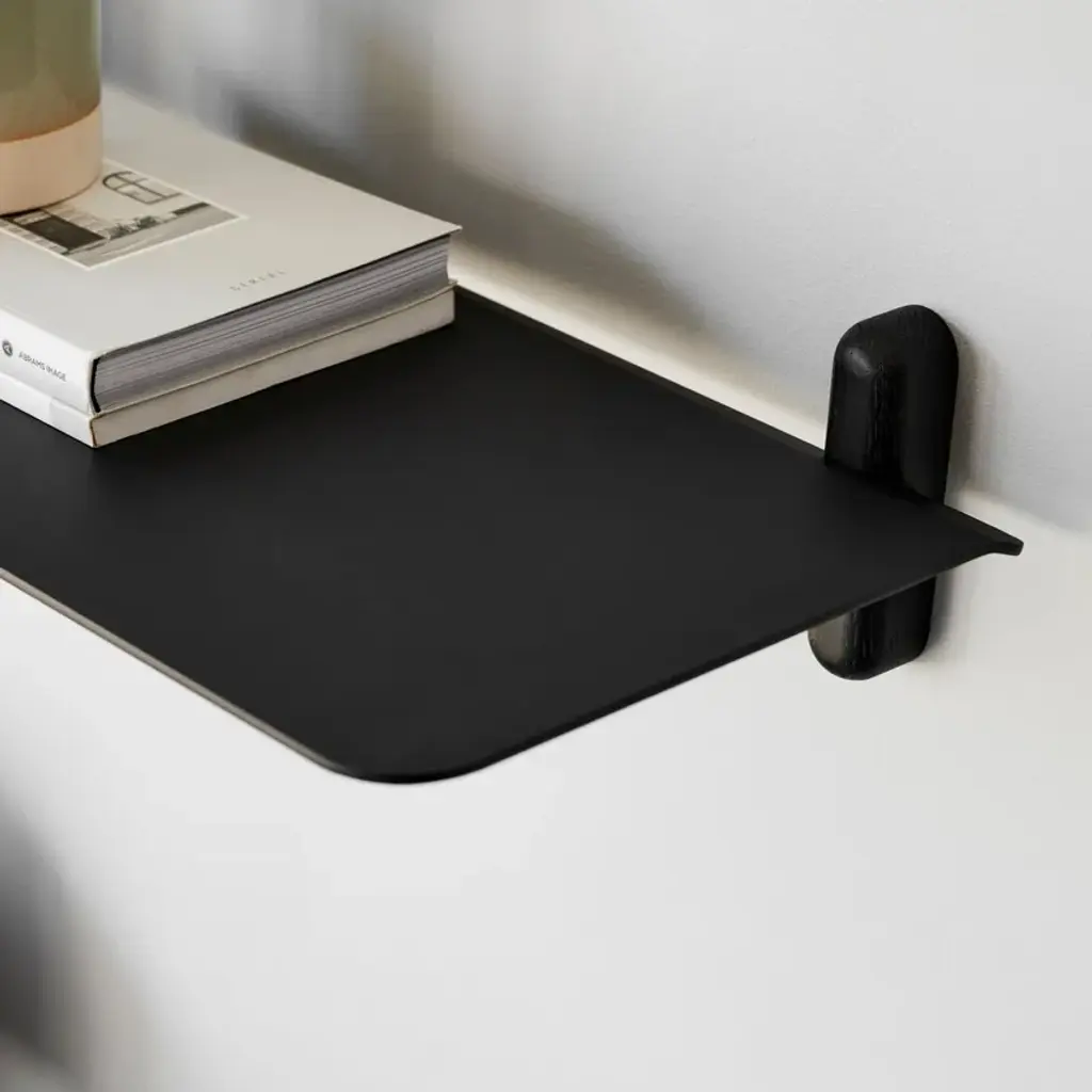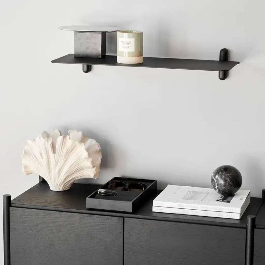 Nivo Large is a minimalistic wall shelf designed by Böttcher & Kayser for Gejst. With no unnecessary details and only clean lines Nivo hangs lightly and elegantly on the wall. Every component has been carefully thought out both in terms of design, form and function. There are no visible screws and the shelves are smoothly plugged in to the wooden poles, that have slits made exactly to fit. Nivo shelf Large has the perfect size to exhibit the bigger things. The shelf is beautiful in every room of the home. Nivo shelf large is available in to different sizes: Nivo Large A, Nivo Large D, Nivo Large E, Nivo Large F, Nivo Large G, Nivo Large H. Both sizes are available in black and white.