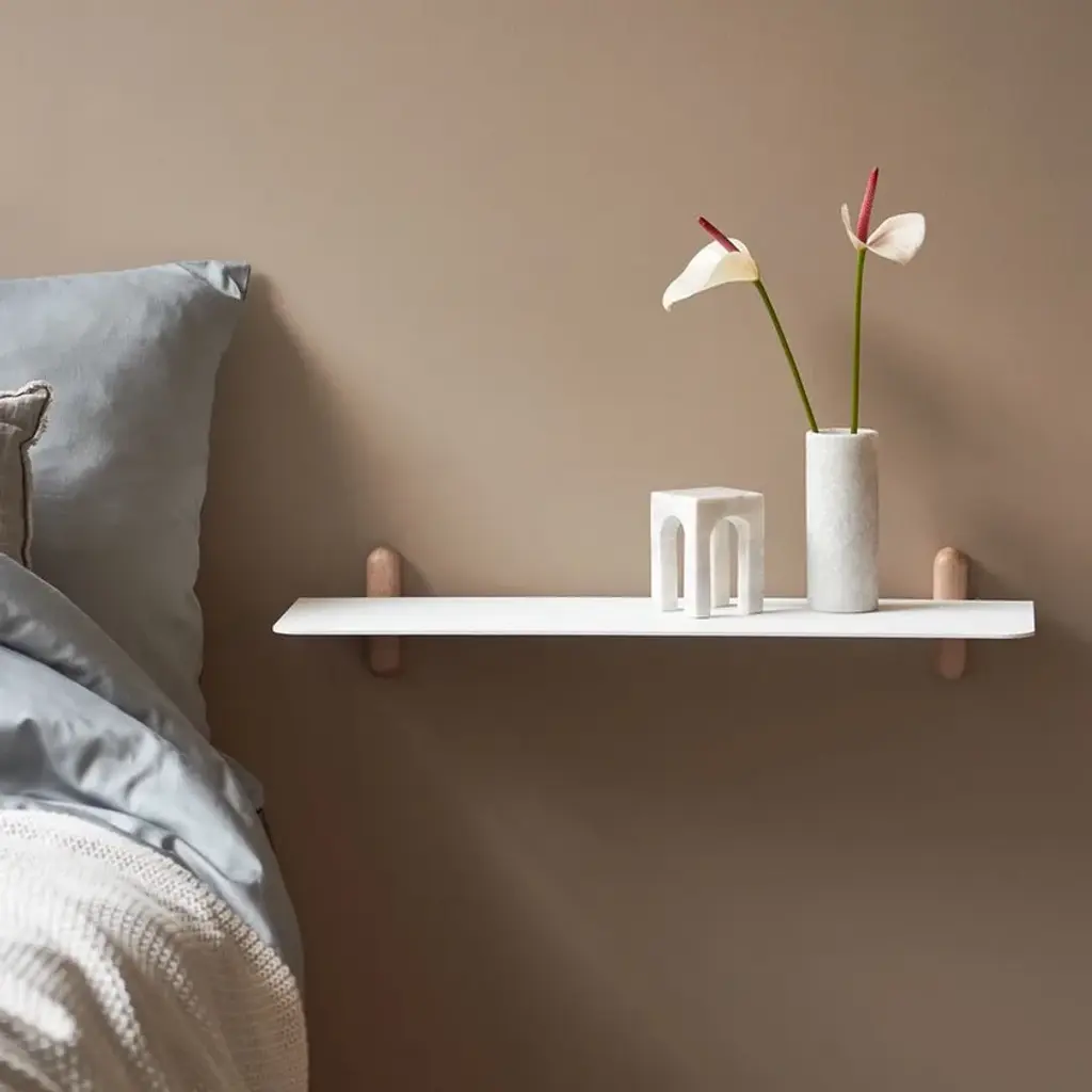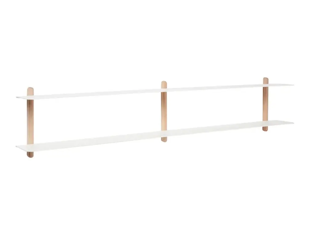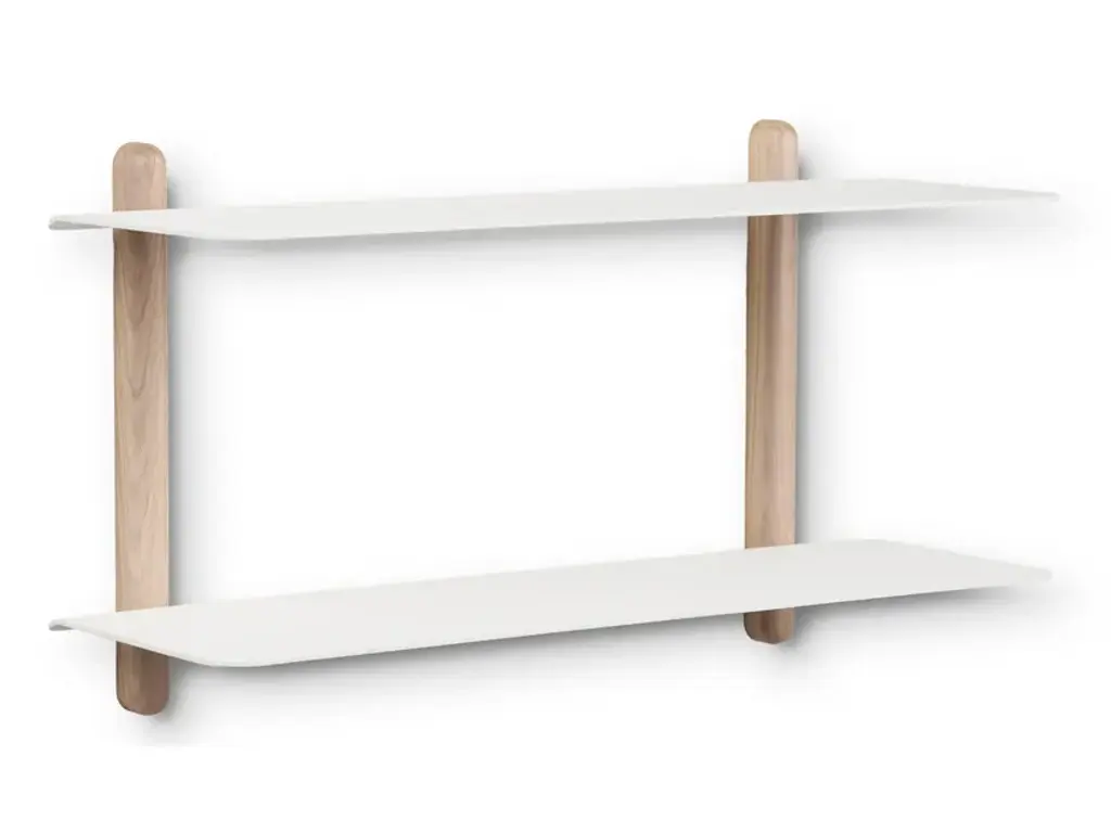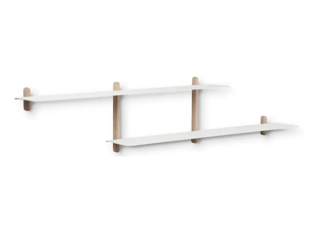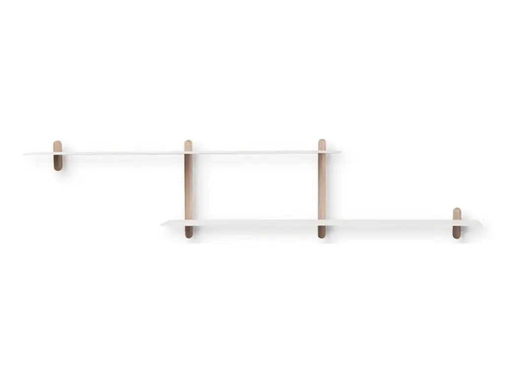 Nivo Large is a minimalistic wall shelf designed by Böttcher & Kayser for Gejst. With no unnecessary details and only clean lines Nivo hangs lightly and elegantly on the wall. Every component has been carefully thought out both in terms of design, form and function. There are no visible screws and the shelves are smoothly plugged in to the wooden poles, that have slits made exactly to fit. Nivo shelf Large has the perfect size to exhibit the bigger things. The shelf is beautiful in every room of the home. Nivo shelf large is available in to different sizes: Nivo Large A, Nivo Large D, Nivo Large E, Nivo Large F, Nivo Large G, Nivo Large H. Both sizes are available in black and white.