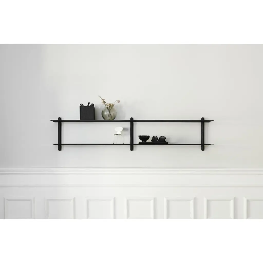 Gejst’s modular Nivo shelving system captures the essence of Nordic design with its pure esthetics and timeless simplicity. Designed by Böttcher & Kayser, the Nivo shelf impresses with its light, streamlined look: all unnecessary details have been stripped away, leaving only the elements essential for form, function and quality. The Nivo shelf mounts to the wall without any visible screws. Each shelf slides smoothly into precisely cut grooves in the wooden uprights, ensuring a flawless and secure fit. Thanks to its minimalist design, Nivo is a versatile addition to any space: use it as a bookcase in the living room or bedroom, as an open shelf in the kitchen, or as functional storage in a home office or meeting room. The system can be further customized with additional hanging bars and hooks sold separately.