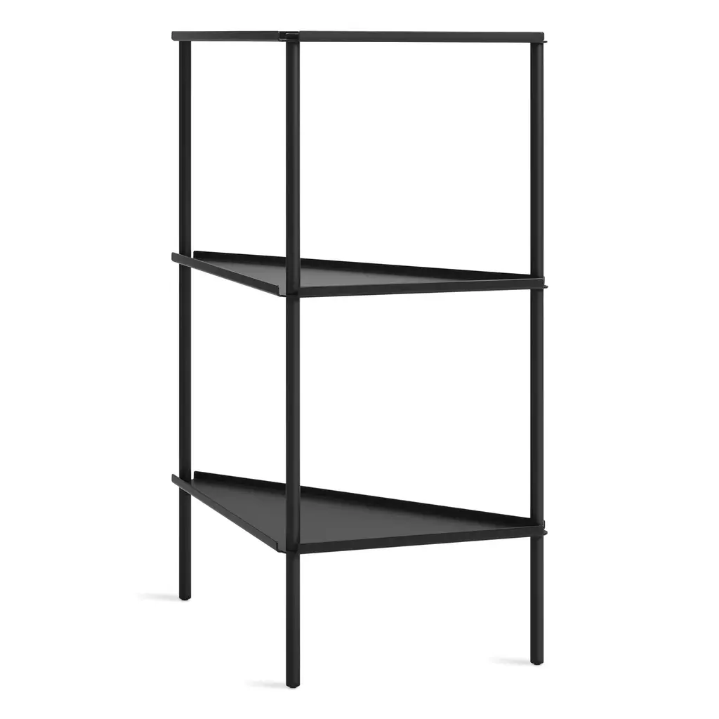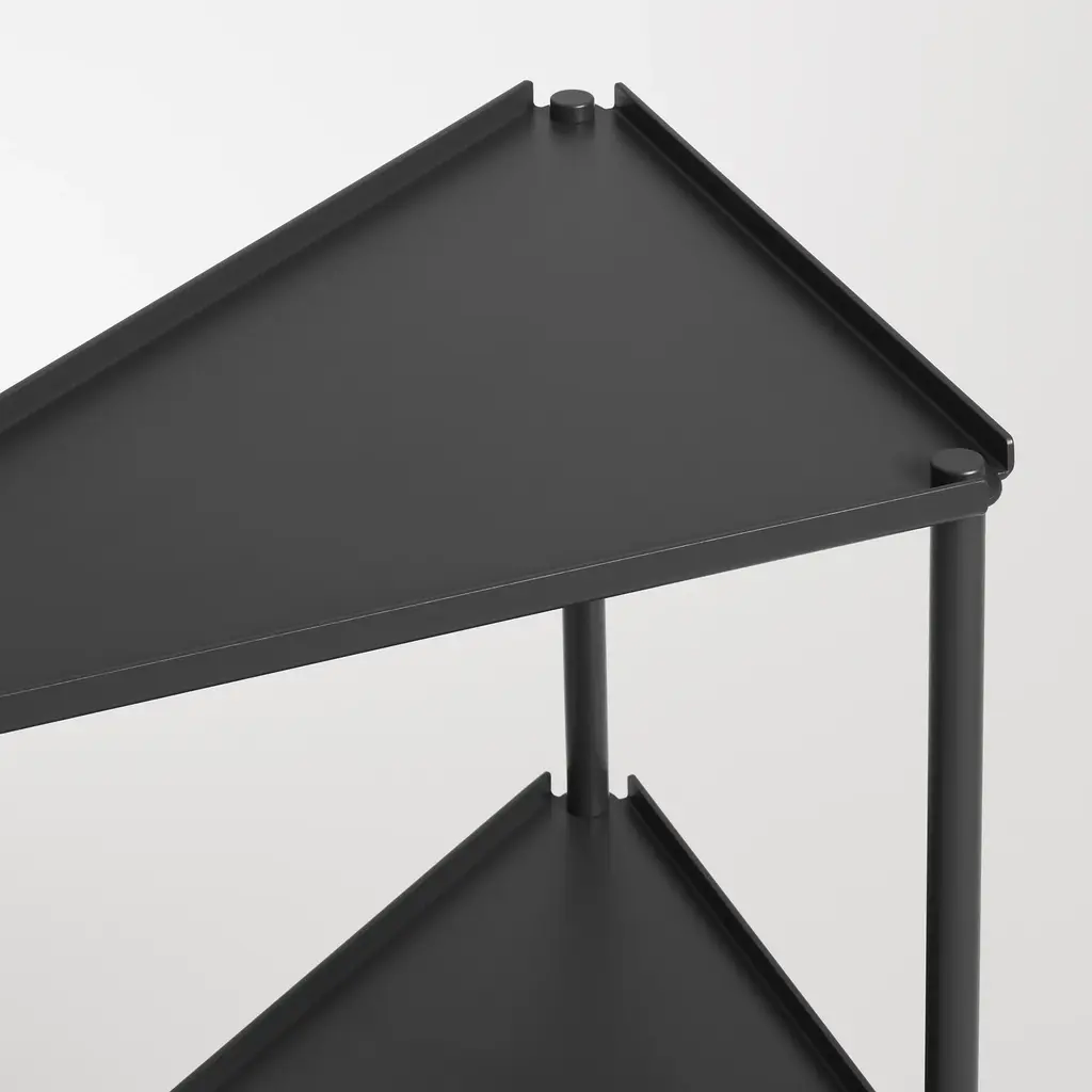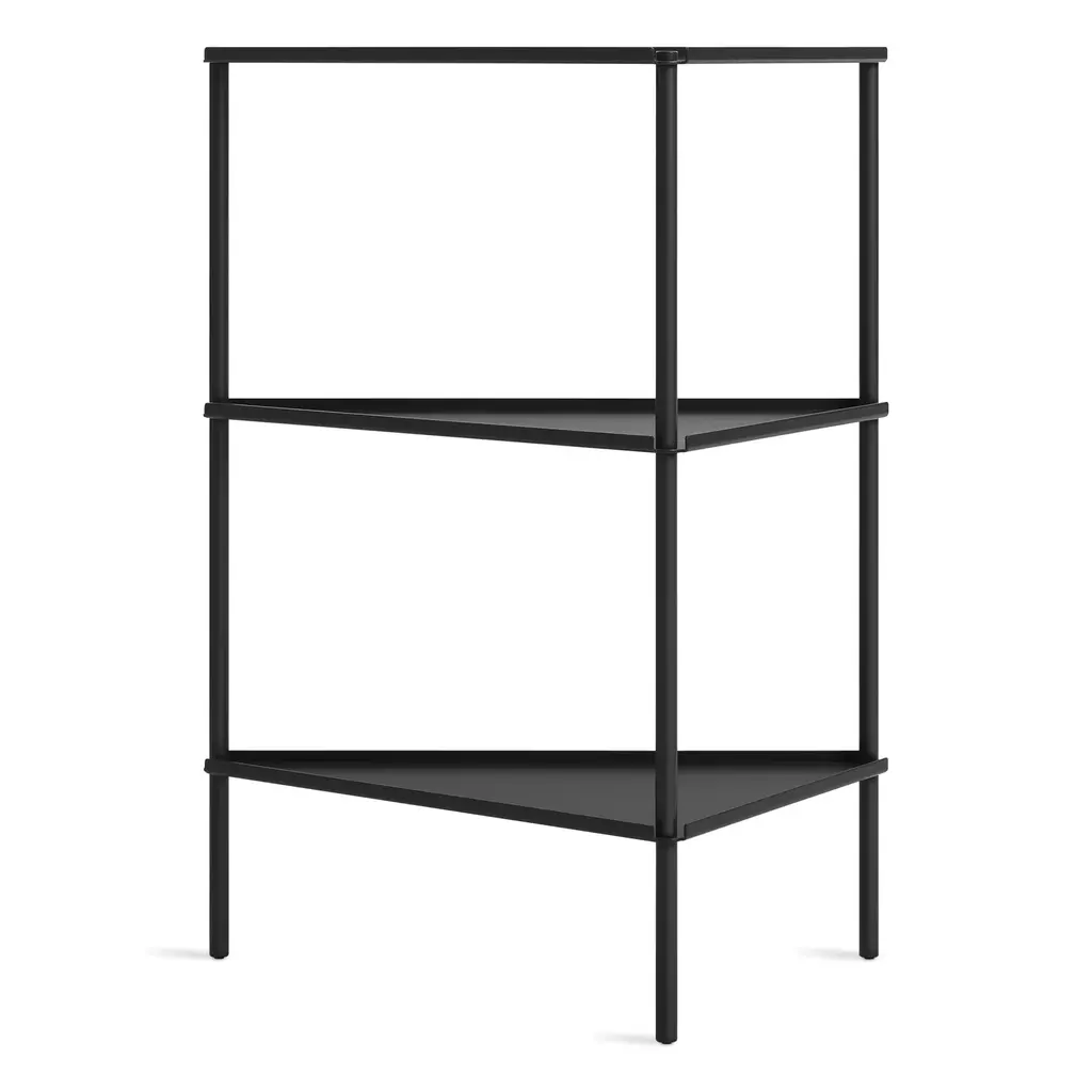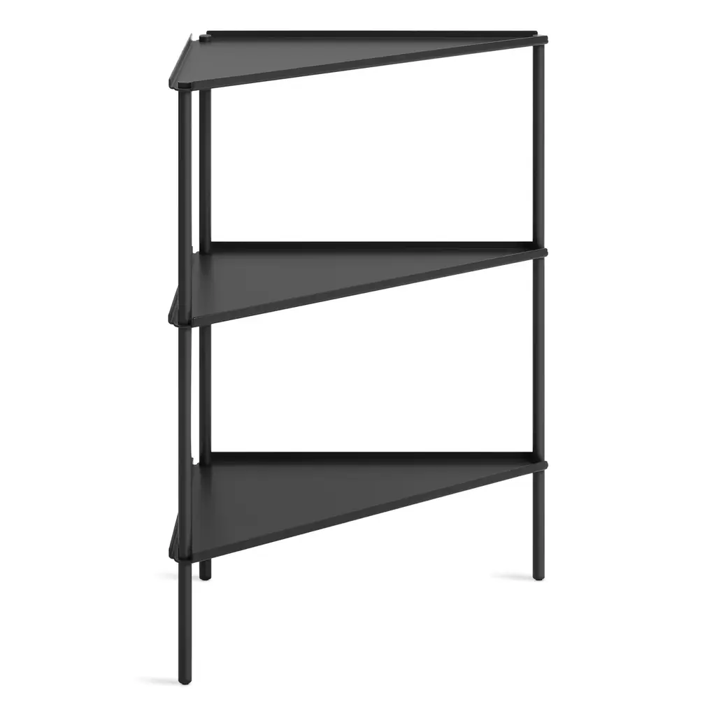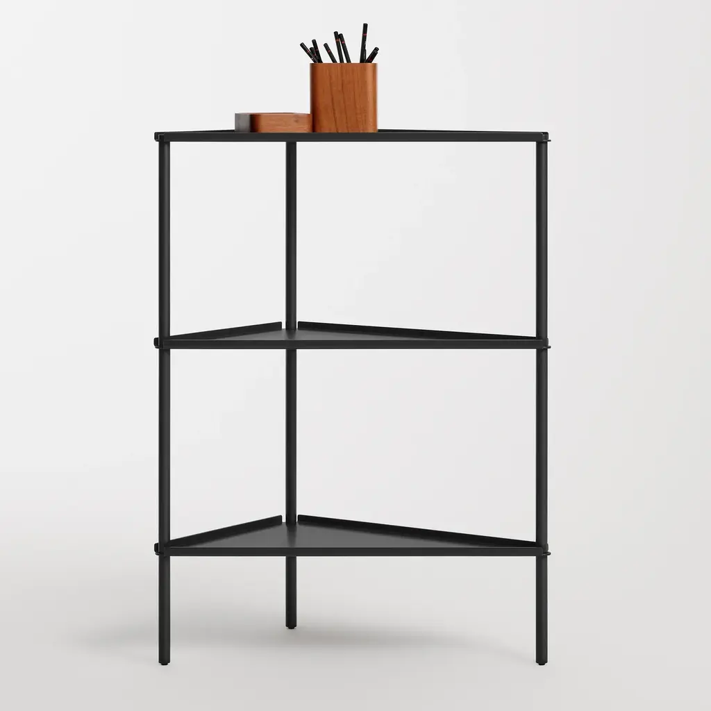 Tidy triangles whip your space into shape. Minimal powder-coated aluminum suits nooks and knickknacks. Available in neutral colors or bold shades, for those who dare to go there. Tuck into a corner and enjoy.