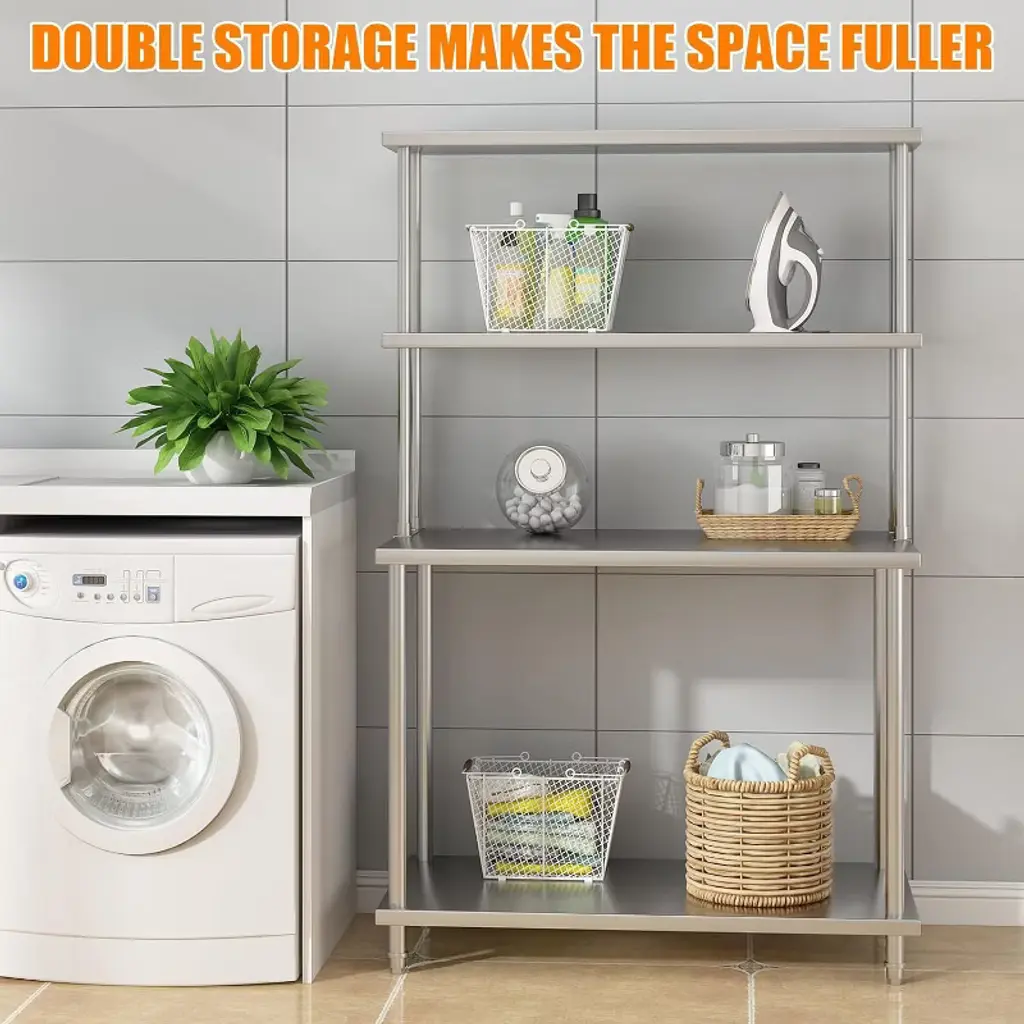 Built for demanding environments, this rust-proof stainless steel work table comes in three sizes (30"/36"/48" widths) with adjustable overshelves for optimized storage. The industrial-strength construction withstands heavy daily use in kitchens, workshops, or garages, while the tool-free assembly gets you operational in minutes. Perfect for chefs, mechanics, and bakers needing a hygienic, multi-purpose work surface with added vertical storage.
