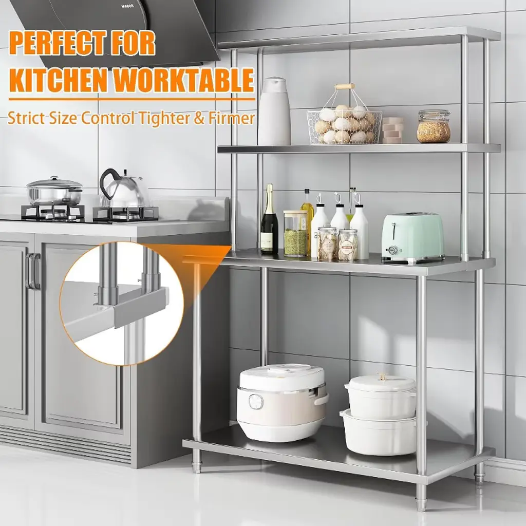 Nsf 12"x48" Stainless Steel Overshelf – 2-tier Adjustable Prep Table Shelf For Commercial Kitchen, Restaurant & Bar