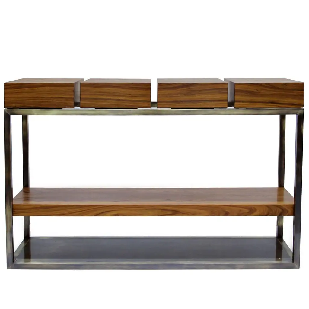 Oak And Marble Console With Rush Shelf - Polished Nickel Plated