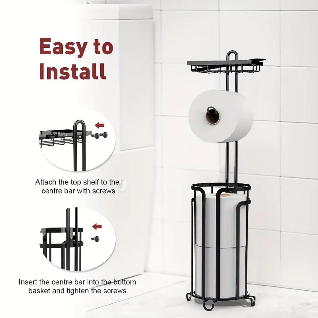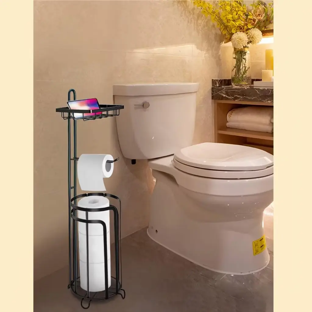 Obokata-toilet Paper Holder Stand Tissue Paper Roll Dispenser With Shelf For Bathroom Storage Holds Reserve -Black